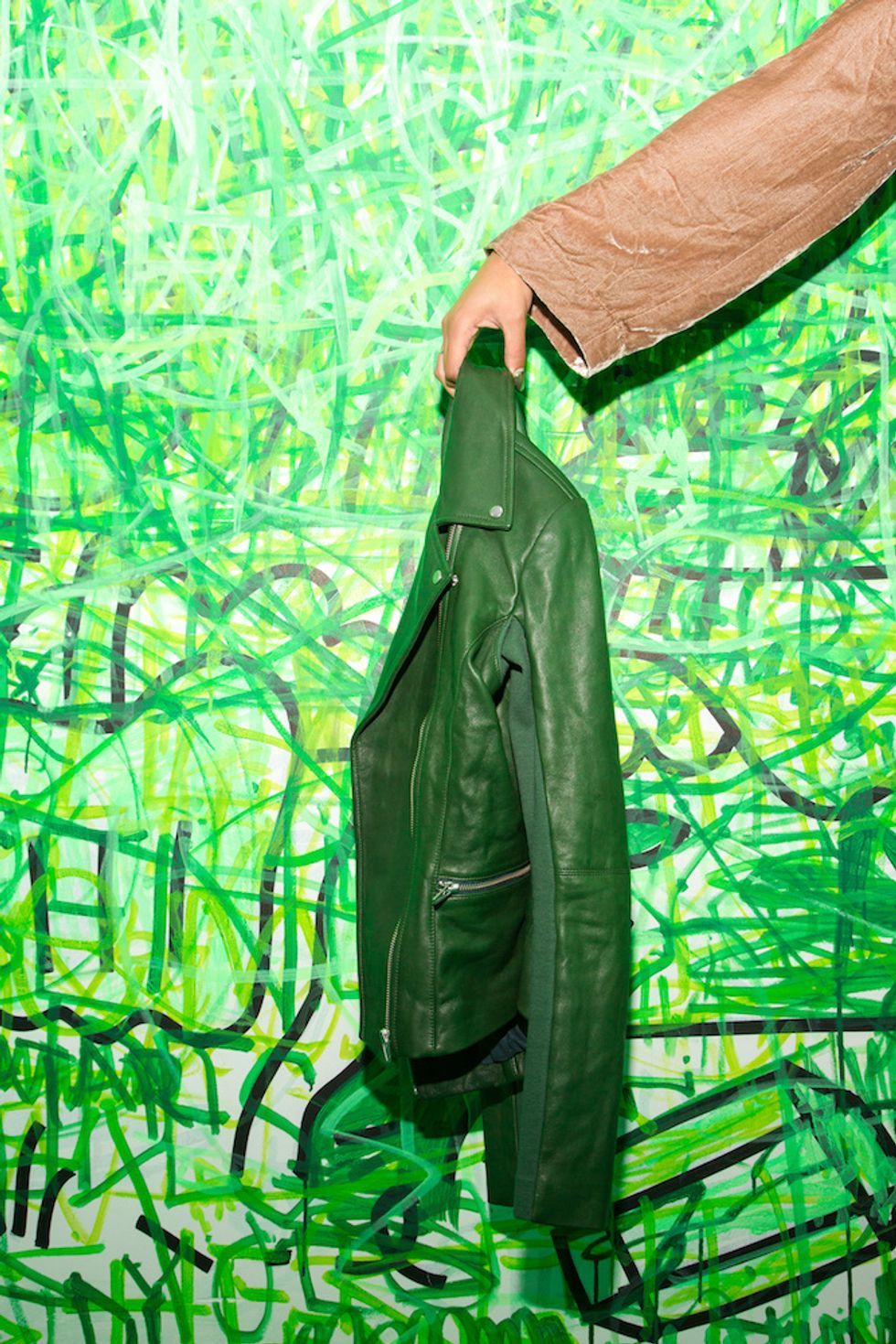 The project makes marvelous use of color, both in monochromatic and contrasting fashion: An ever-so-green leather bomber against a wall of other verdant shades sparks the imagination, while a royal blue velvet dress against a pink velvet chesterfield sofa makes less of a statement about color than it does about texture.