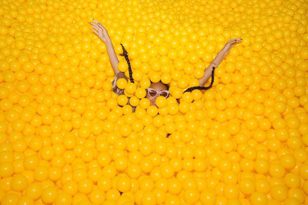 "We were really excited to have her shoot at the Color Factory," says Kim LoCicero, marketing director for Veda, which has collaborated with Basile this past. "Anna's photography brings a playful aspect to the brand and it's fun to see the juxtaposition of the environments she chooses with the fabrications and colors used in our collection."