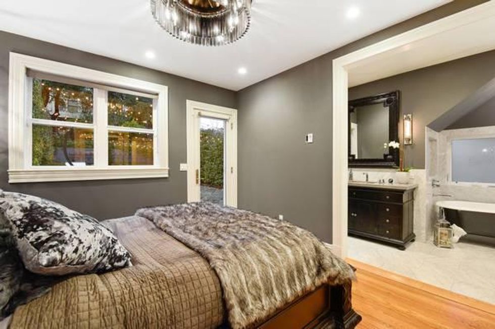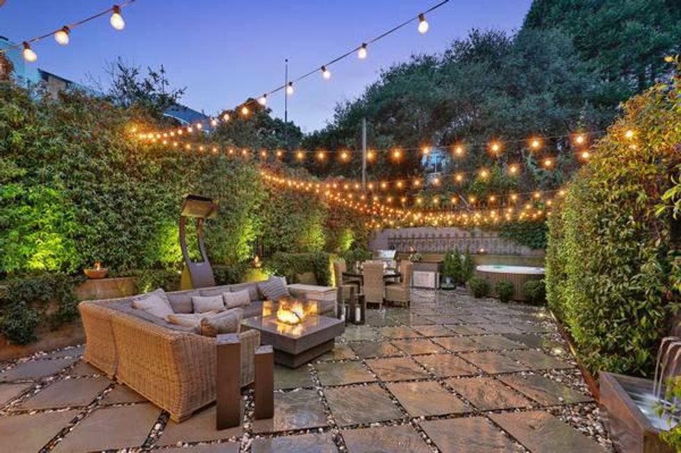 But the best part of the home is definitely the backyard, which is fully equipped for taking advantage of the neighborhood's warmer microclimate. Hang out al fresco with a jacuzzi, fire table, water feature, and sound system. There's also a built-in barbecue, plenty of seating, and a waterproof 4K TV.