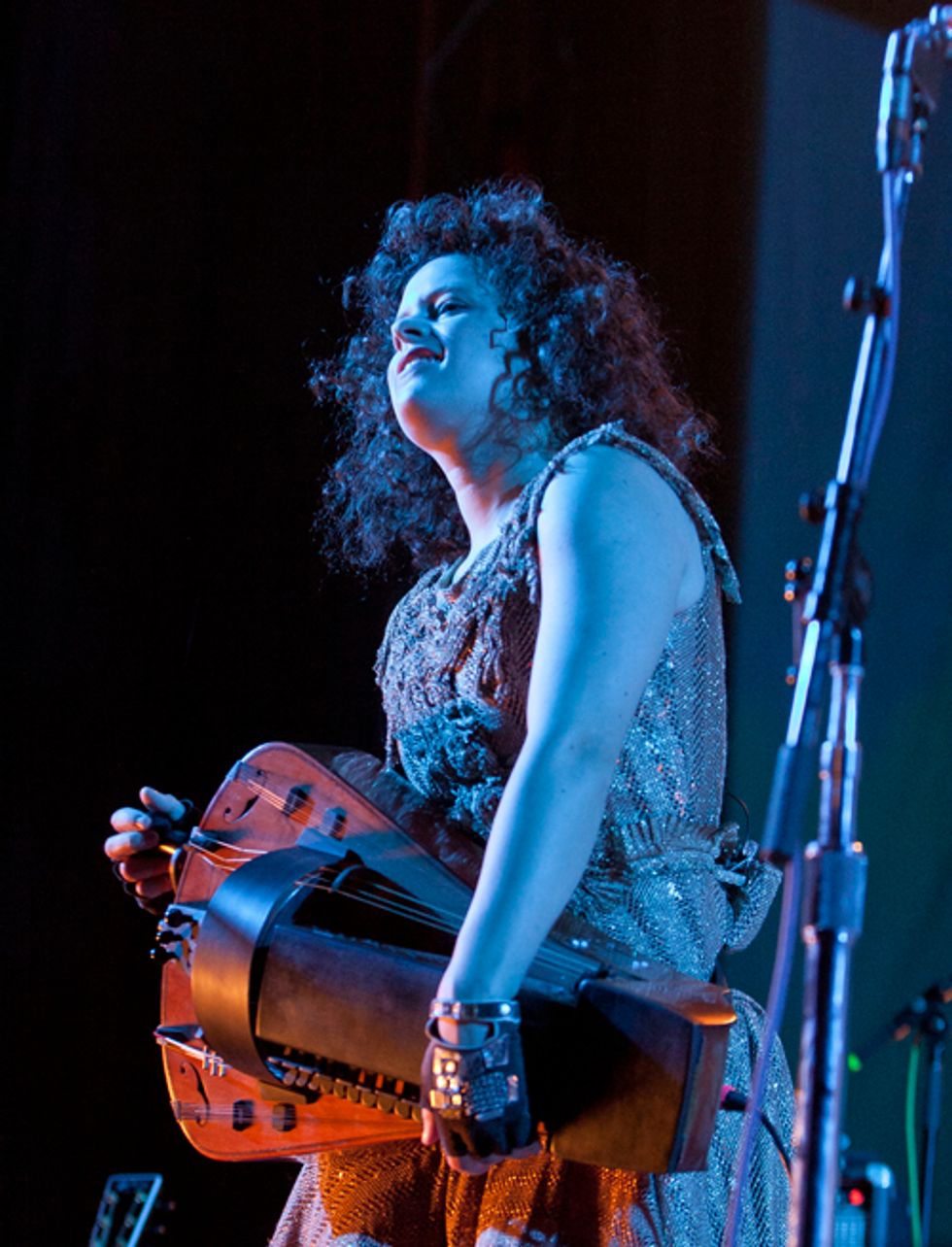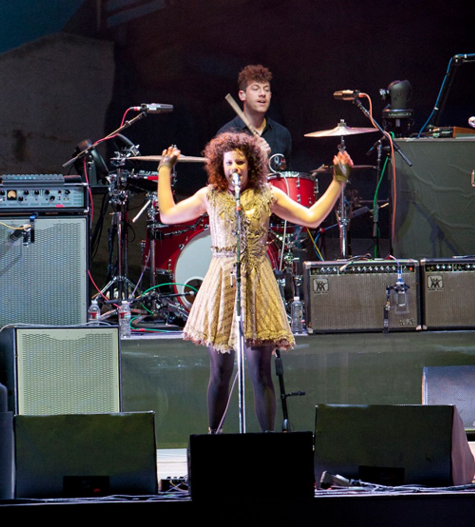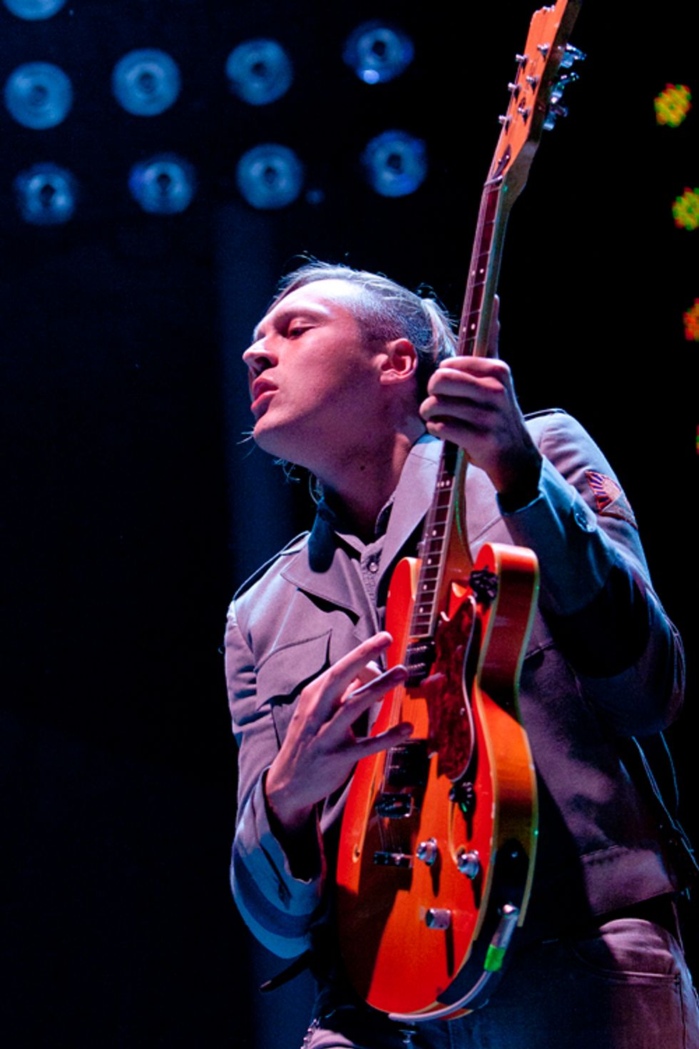 With seven band members total, each wielding three to five different instruments, plus two drum sets and an entire percussion arsenal, the two-tiered stage looked about as crowded as anywhere else in the amphitheater. Each song was arranged with a unique performance, which incorporated both a light show and a stream of surreal images projected on a giant video screen. But most impressive was the continual changing of the guard, as band members appeared to be continually rotating around the stage throughout the set, proving that all of them are multi-talented musicians.