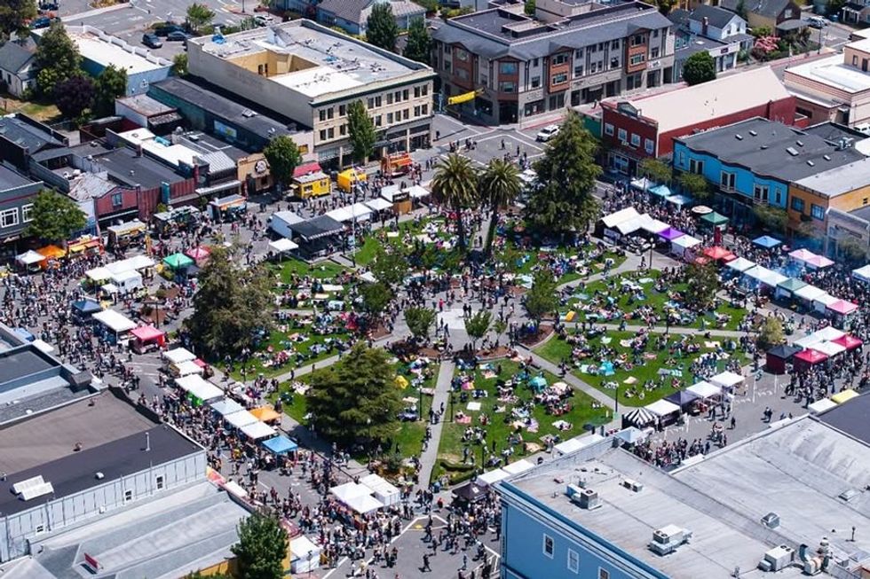 The Arcata Plaza is at its liveliest at Saturday Farmers Markets and during events like Arcata Oyster Fest.