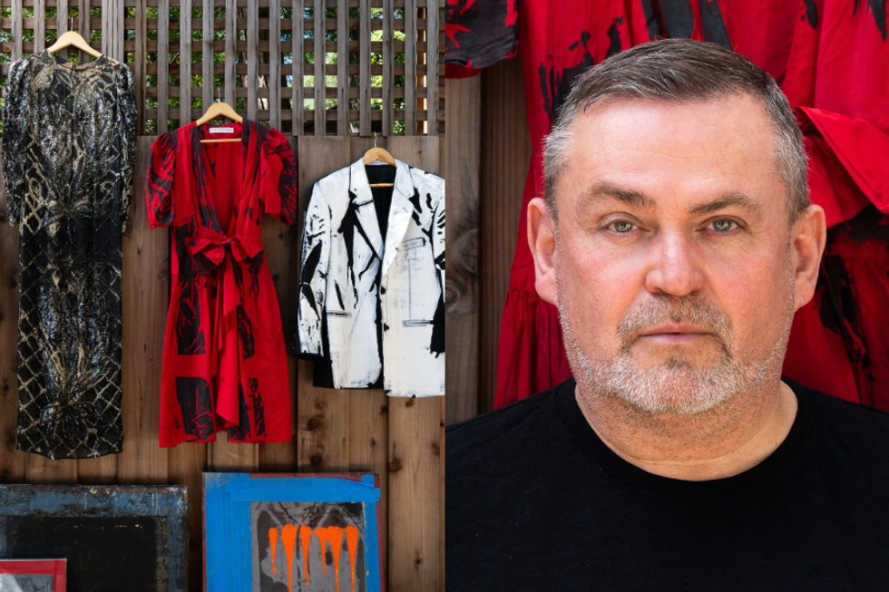 ICYMI, Simon was a close friend/collaborator of the late Alexander McQueen. He also served as director of Academy of Art University's School of Fashion for 29 years. Today his label, When Simon Met Ralph, employs his signature graphic printing techniques on vintage, deadstock and discarded garments to create "new” pieces that ooze modernity with edge. Giving old clothes new life with his undeniably cool stamp is Simon’s happy place.