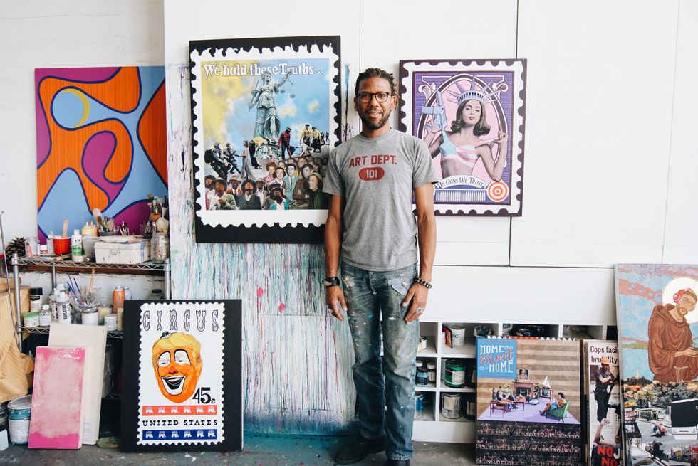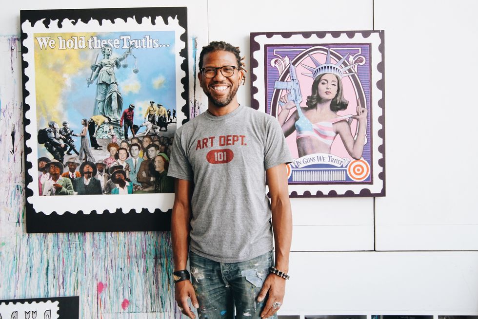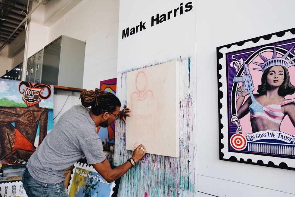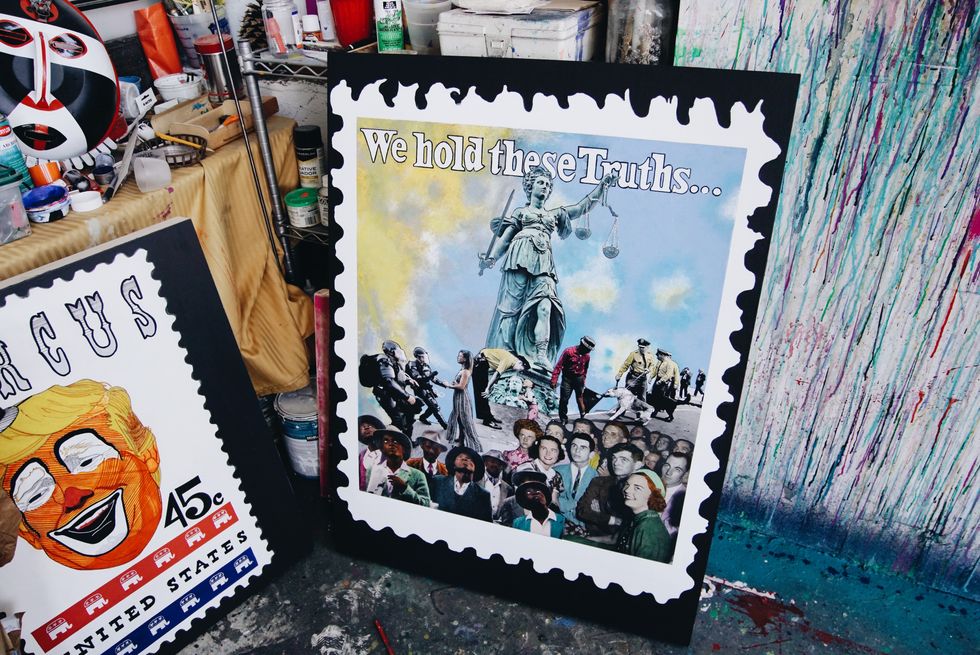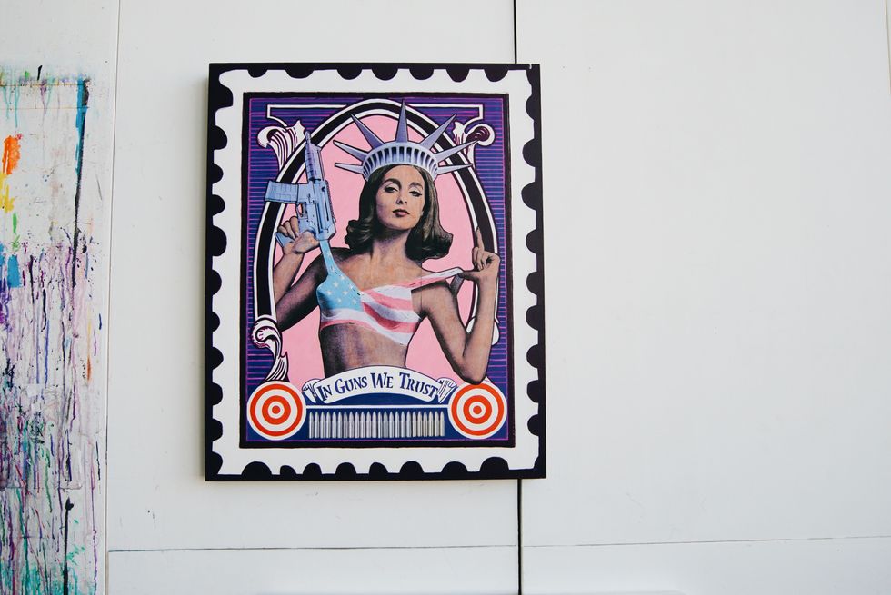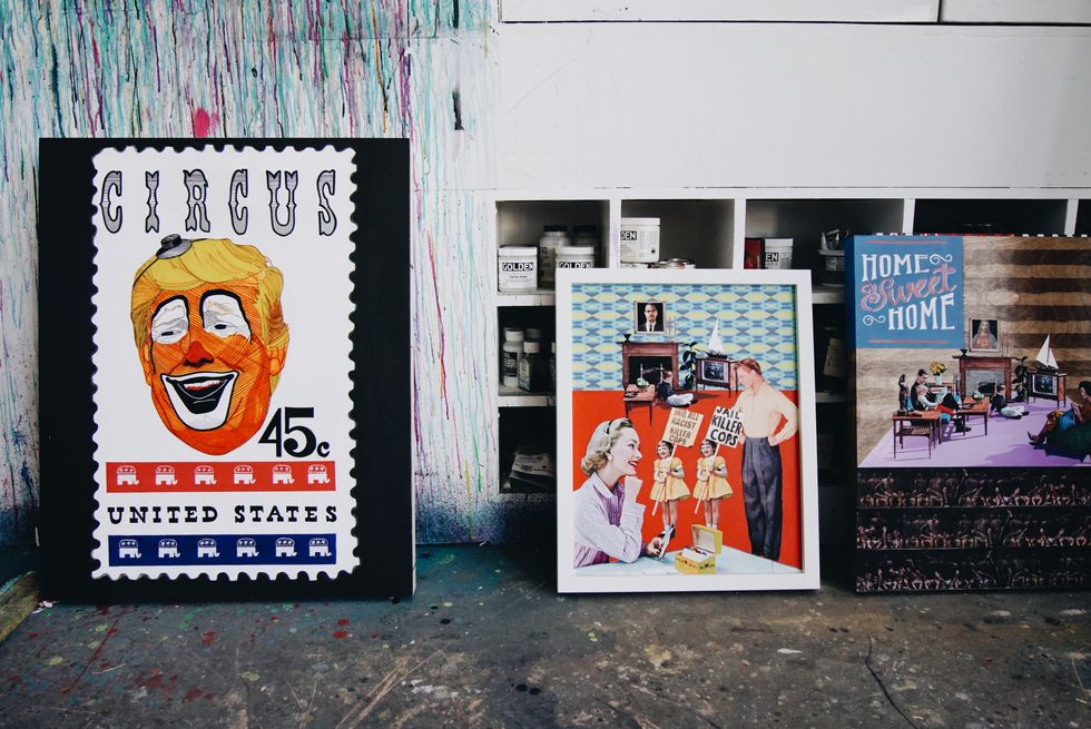 Meet, Mark Harris, mixed media artist, who translates his passion for political and social justice into his artwork. His works are a reflection of the current political situation we are experiencing and he strives to inspire viewers to consider the values that are ruling the society. His daily job at the motorcycle rental company, to him, is an international news platform where he can talk to people from around the world about their own countries. These experiences then make their way into his collages.