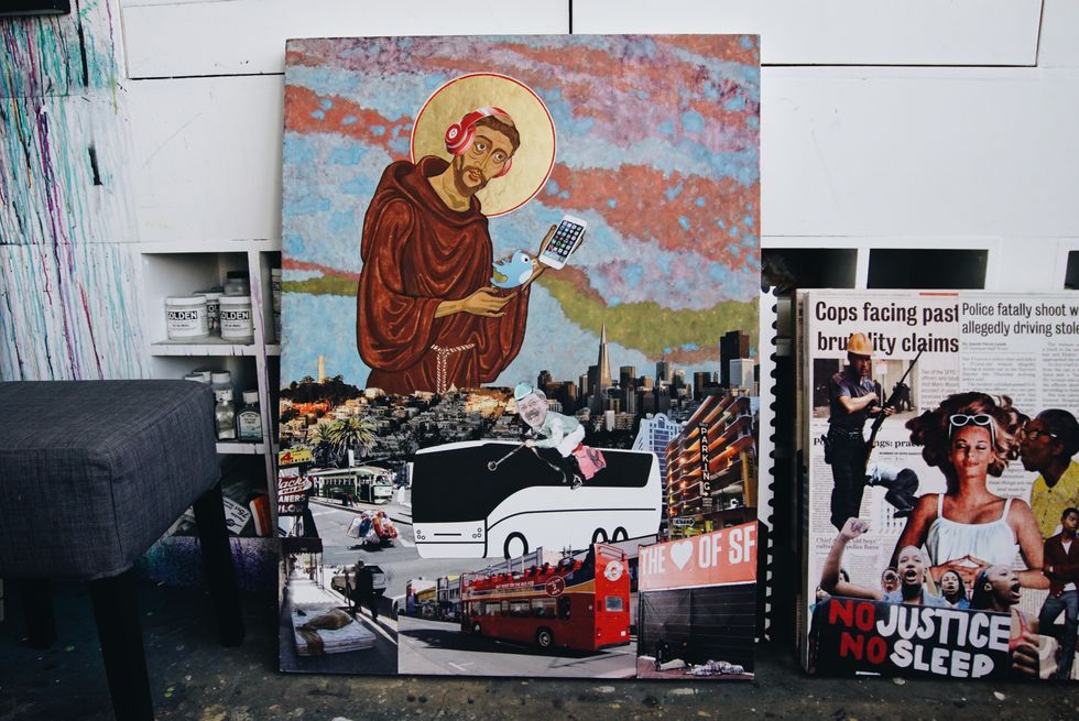 Medium: Harris is a mixed media artist spanning a wide range of techniques including photography, painting and collage. As an avid activist, Harris' art aims to engage and enlighten the public to what's happening in San Francisco and around the world. His notable series of collages, including State of Denial, are his way of protesting and shedding light to police brutality and racism. Another topic Harris is working on is currency and its relationship with wealth; how it's created, who benefits and who suffers, how we all play a role in a capitalist system. All of his investigative artworks will be on show this weekend for Open Studios.