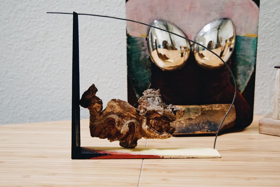 Medium: Once a painter, Vernitsky can now frequently be spotted picking up bits of plastic or metal trash, hunks of driftwood, burls or fallen tree limbs, on the beach, at the park or on the street. The treasures are then upcycled into assembled sculptures that ride the line between static and movement. Each installation investigates time, scale and narrative.