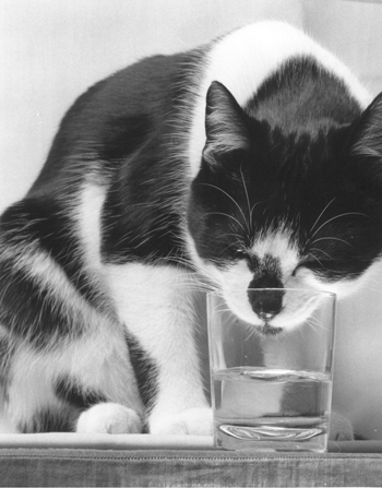 Q: Although I provide my cat a sparkling fresh bowl of water every day, I often catch her drinking from MY water glass. Is it safe for me to drink this water after she's sampled it? I hate to throw it out!