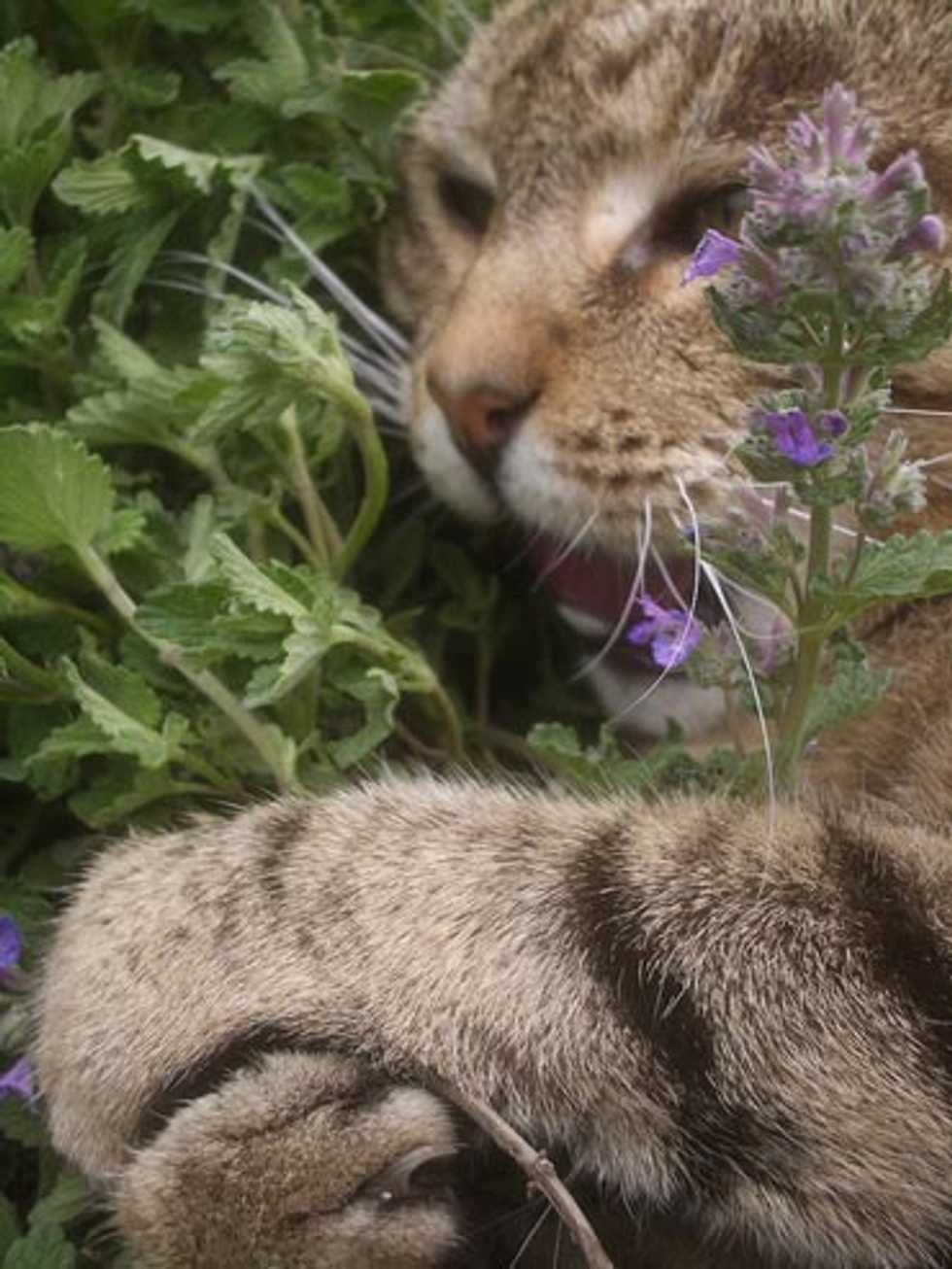 The response to catnip can differ from cat to cat. Some cats become very agitated others become almost sleepy. The behavior can range from sniffing, drooling, pawing, licking, eating, vocalizing and chin, cheek and body rolling similar to a cat in heat as well as growling. The response starts quickly after exposure but usually only last for 5-15 minutes. The chemical that induces this behavior in cats is called Nepetalactone and it is an olfactory (smell) response. Don’t waste your money on catnip for a kitten as the response does not occur before 3 month of age. If your cat enjoys catnip, it is safe to use and can offer wonderful environmental enrichment for a house cat. Don’t you wish mint tea could make you drool, paw, lick, roll on the floor or growl? Lucky kitties.