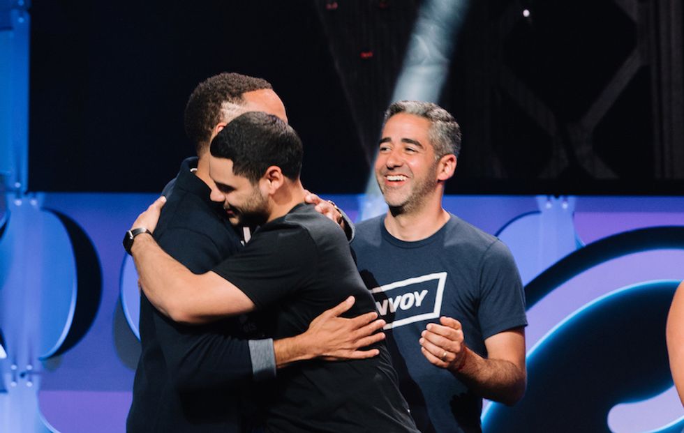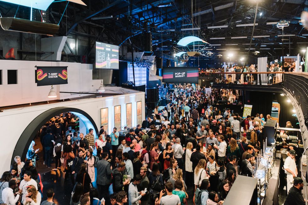 An estimated 1,500 attendees filled the building to watch entrepreneurs pitch their projects, Shark Tank–style, to judges including former vice-chair of General Electric Beth Comstock and MoviePass cofounder Hamet Watt. They also came to mingle with recruiters, buy handmade wares, take in wisdom from famous creatives, and dance to the music of St. Vincent and DJ Daddy Kat. Former Teen Vogue editor-in-chief Elaine Welteroth and model Adi Neumann (sister to WeWork CEO Adam Neumann) co-hosted.