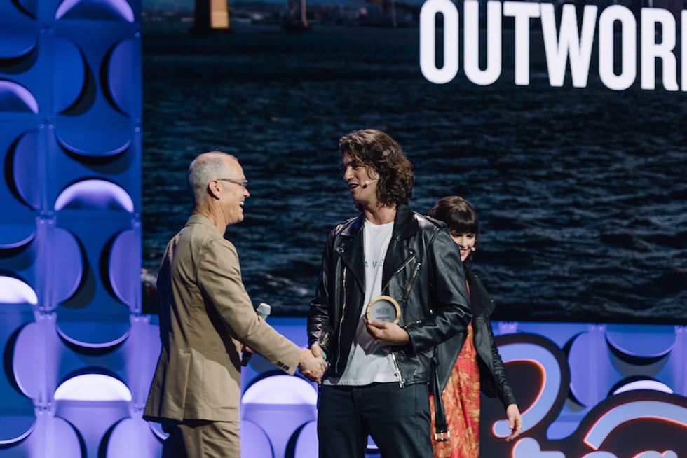Most likely to make LGBTQ history: Mason Funk, an L.A. filmmaker building a video archive of LGBTQ pioneers and elders across America called Outwords, won $36,000 as the Community Giver recipient. Funk, 59, choked up while accepting the award, which will pay for another round of interviews (so far, his team has captured the stories of 129 pioneers in 25 states) and begin to lay the groundwork for a searchable, digital platform. "The queer community has our own Greatest Generation," Funk said. "I was seized by the passionate urgent desire to capture these stories while they're still alive to preserve them forever and share them with the world."