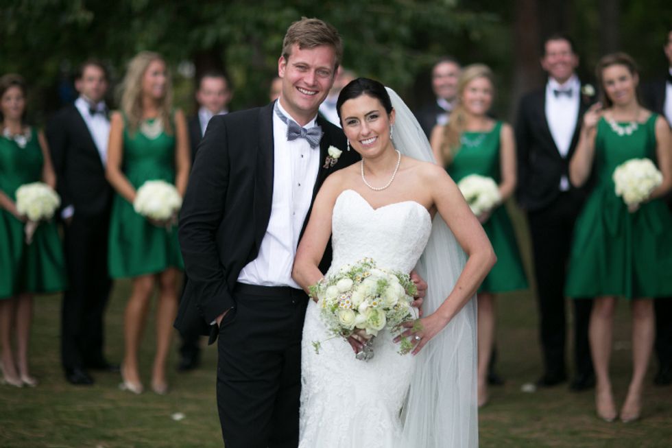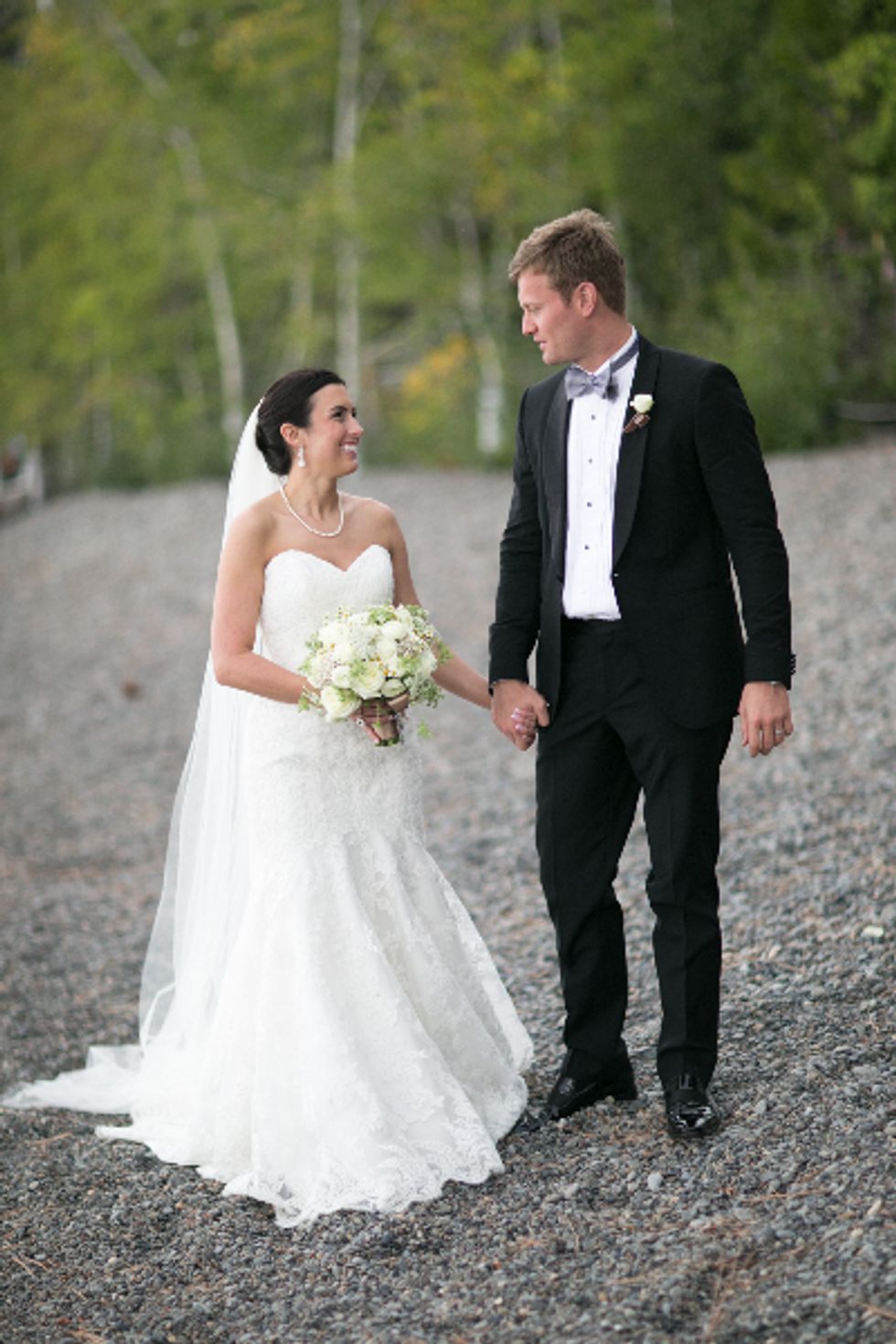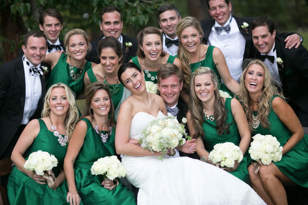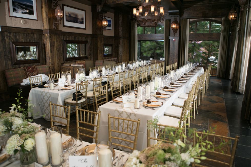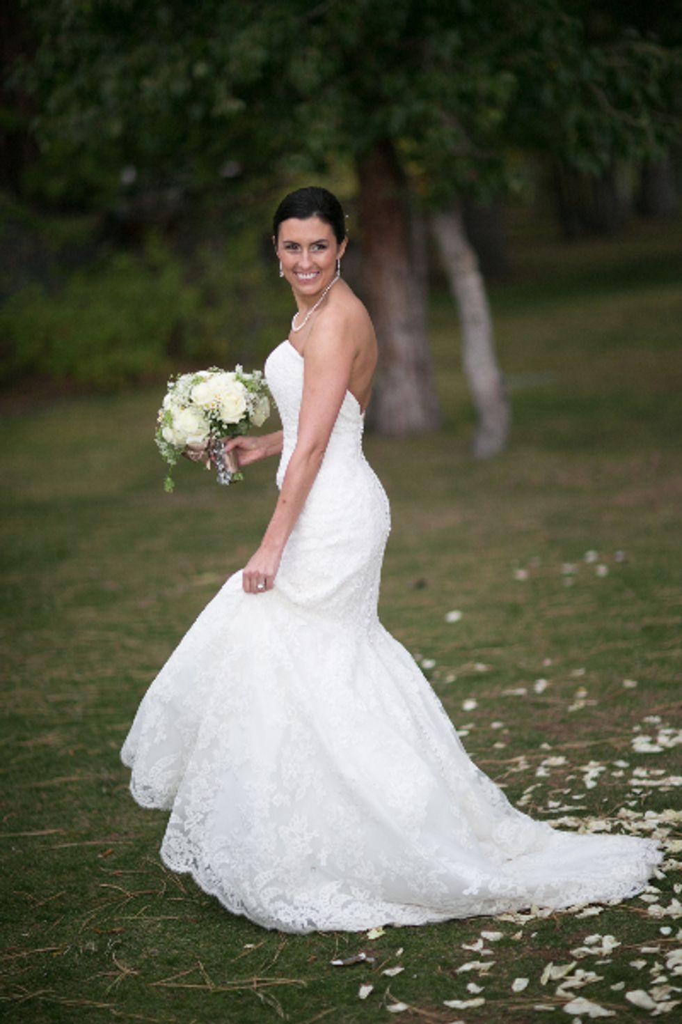 Alison's dad suggested West Shore Café as a venue long before she was engaged and the couple fell in love with it. Planning a wedding from 8,000 miles away was an adventure on its own, but luckily Alison's family was in California to help. To highlight the gorgeous venue and amazing back drop, Alison wanted to keep the colors simple and fairly neutral – using all whites and gold – but still have a bit of rustic glam. The bridesmaids dresses were the only splash of color – a beautiful emerald green that ended up looking fantastic with the lake as a background.