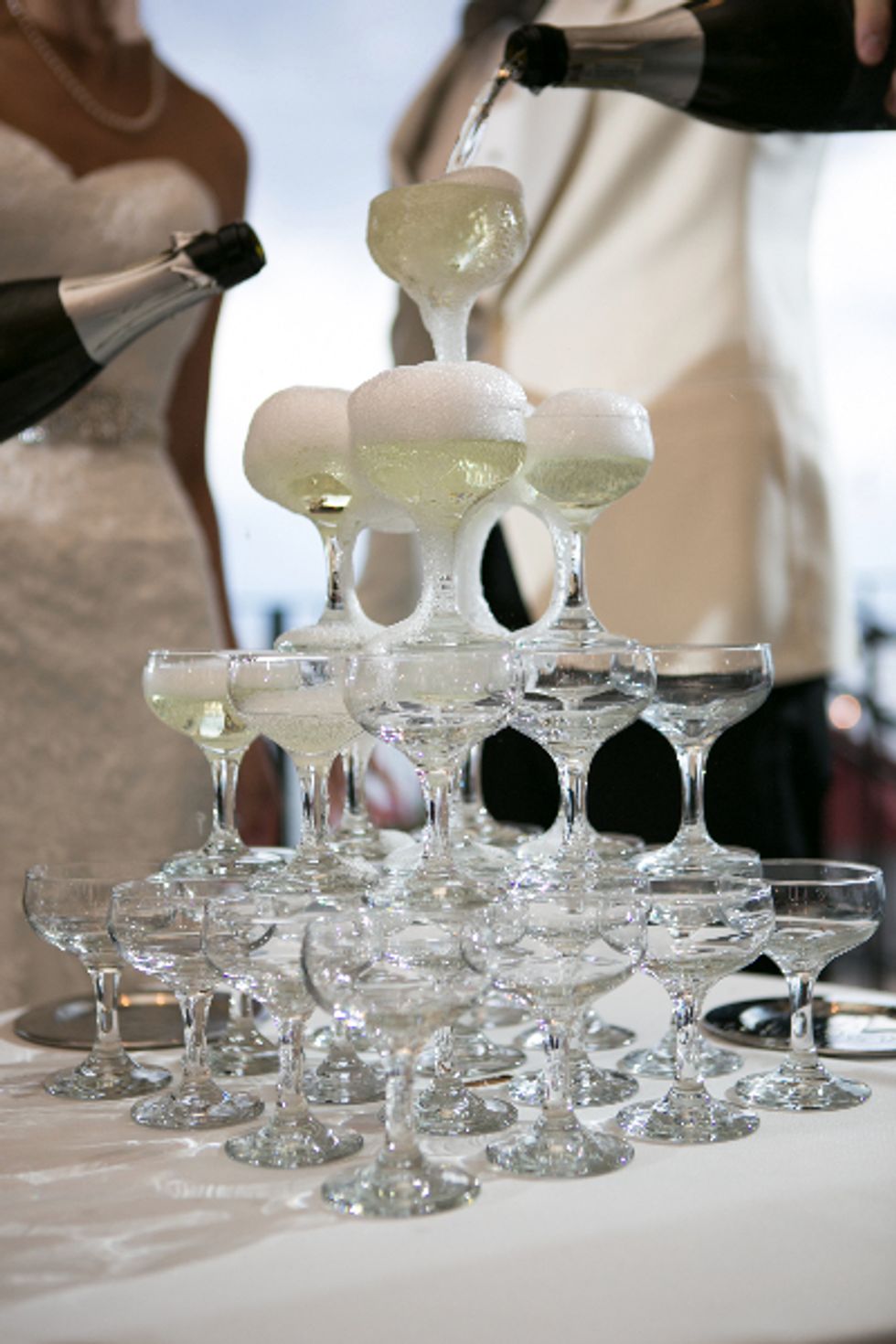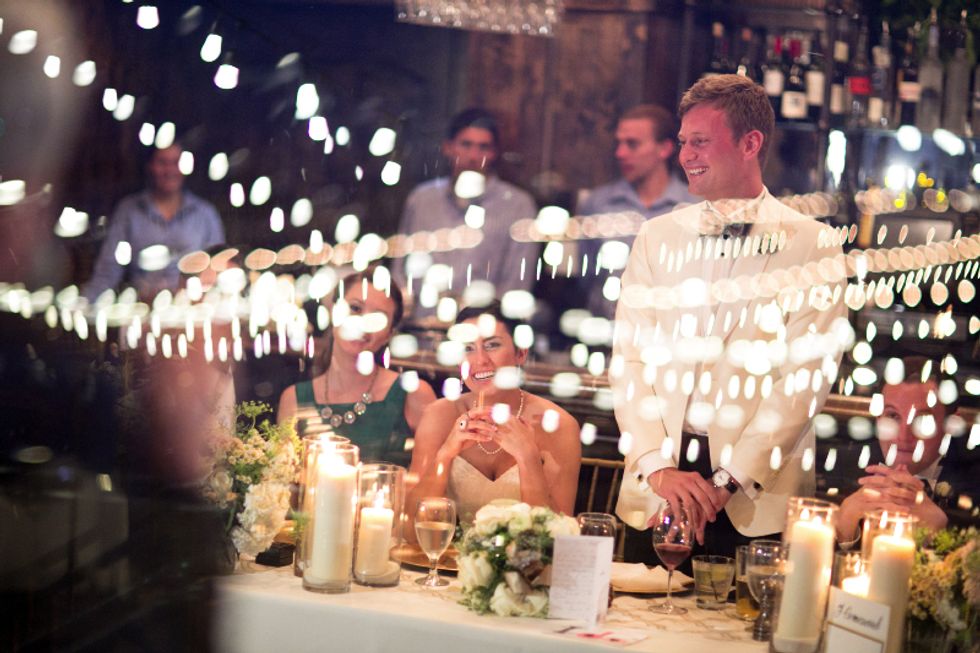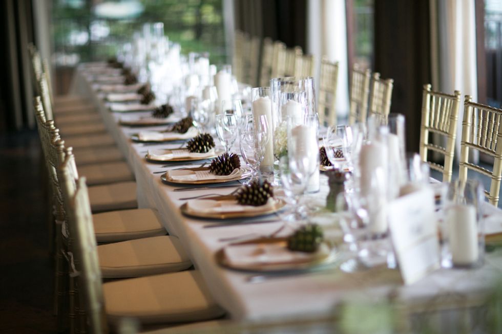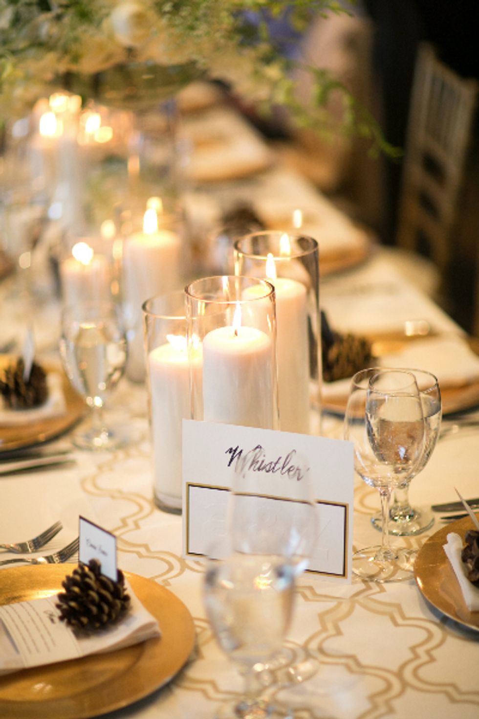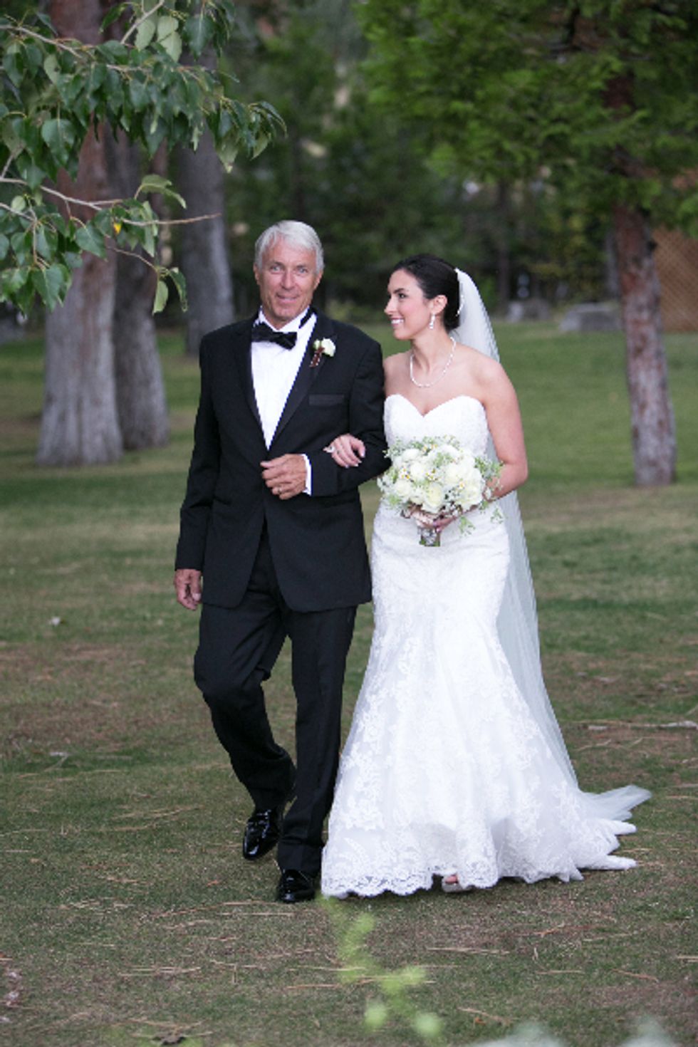 Alison's dad suggested West Shore Café as a venue long before she was engaged and the couple fell in love with it. Planning a wedding from 8,000 miles away was an adventure on its own, but luckily Alison's family was in California to help. To highlight the gorgeous venue and amazing back drop, Alison wanted to keep the colors simple and fairly neutral – using all whites and gold – but still have a bit of rustic glam. The bridesmaids dresses were the only splash of color – a beautiful emerald green that ended up looking fantastic with the lake as a background.