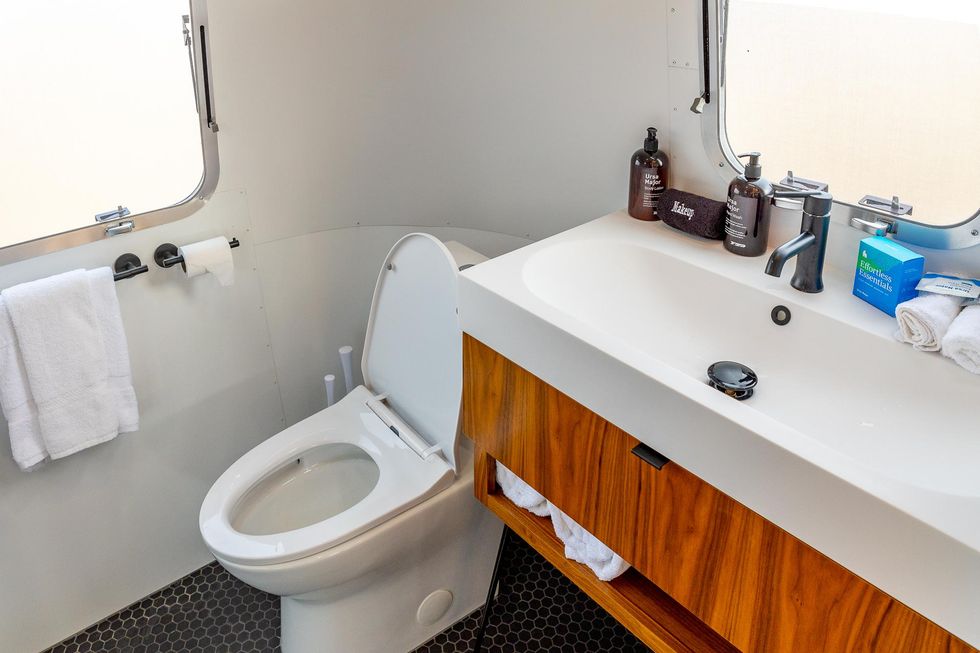 The 25-acre property is dotted with 47 Airstreams (plus some luxury suites and tents) each with a comfy queen bed; a kitchenette stocked with basic dishes, cookware and utensils (you'll appreciate the cast iron pan for grilling); closets; and a bathroom with a shower, sink, and toilet. Nice little extras include bathrobes, some essential toiletries, complimentary water bottles for filling at the onsite water station, and heat and air. There are also, of course, outdoor picnic tables and fire pits; wood can be purchased at the clubhouse. If you're planning to get chef-y, you'd be wise to pack your own spices and oils.