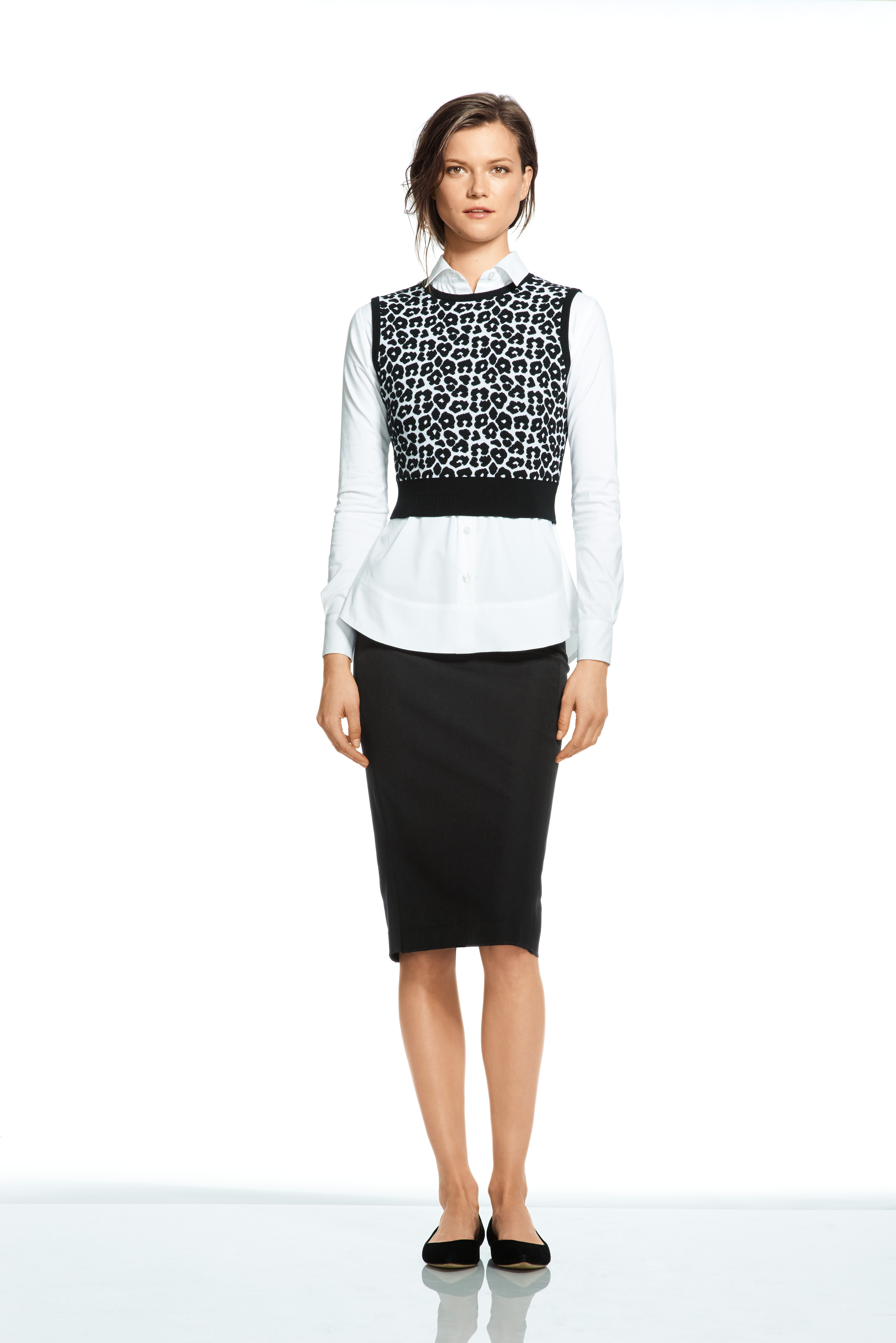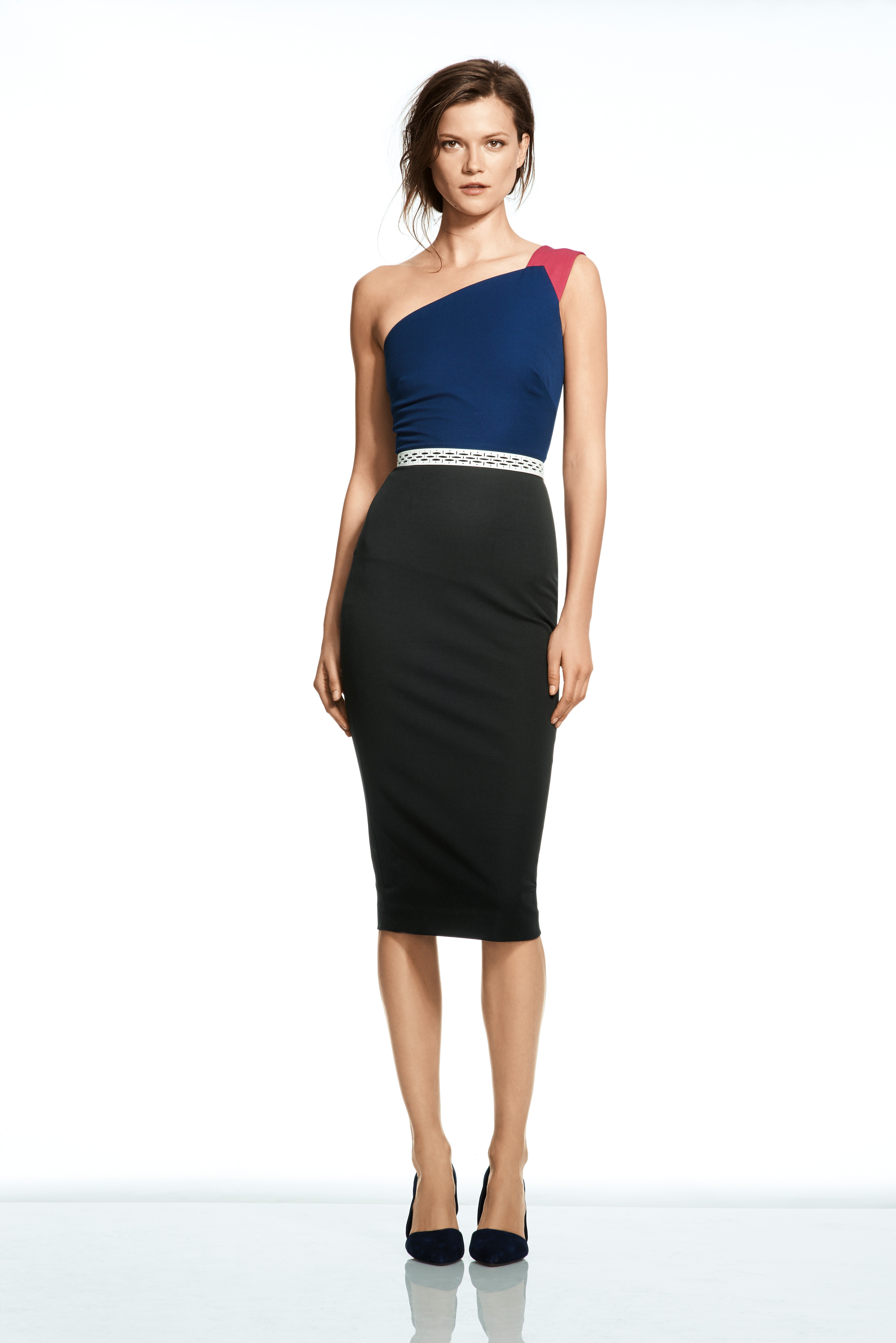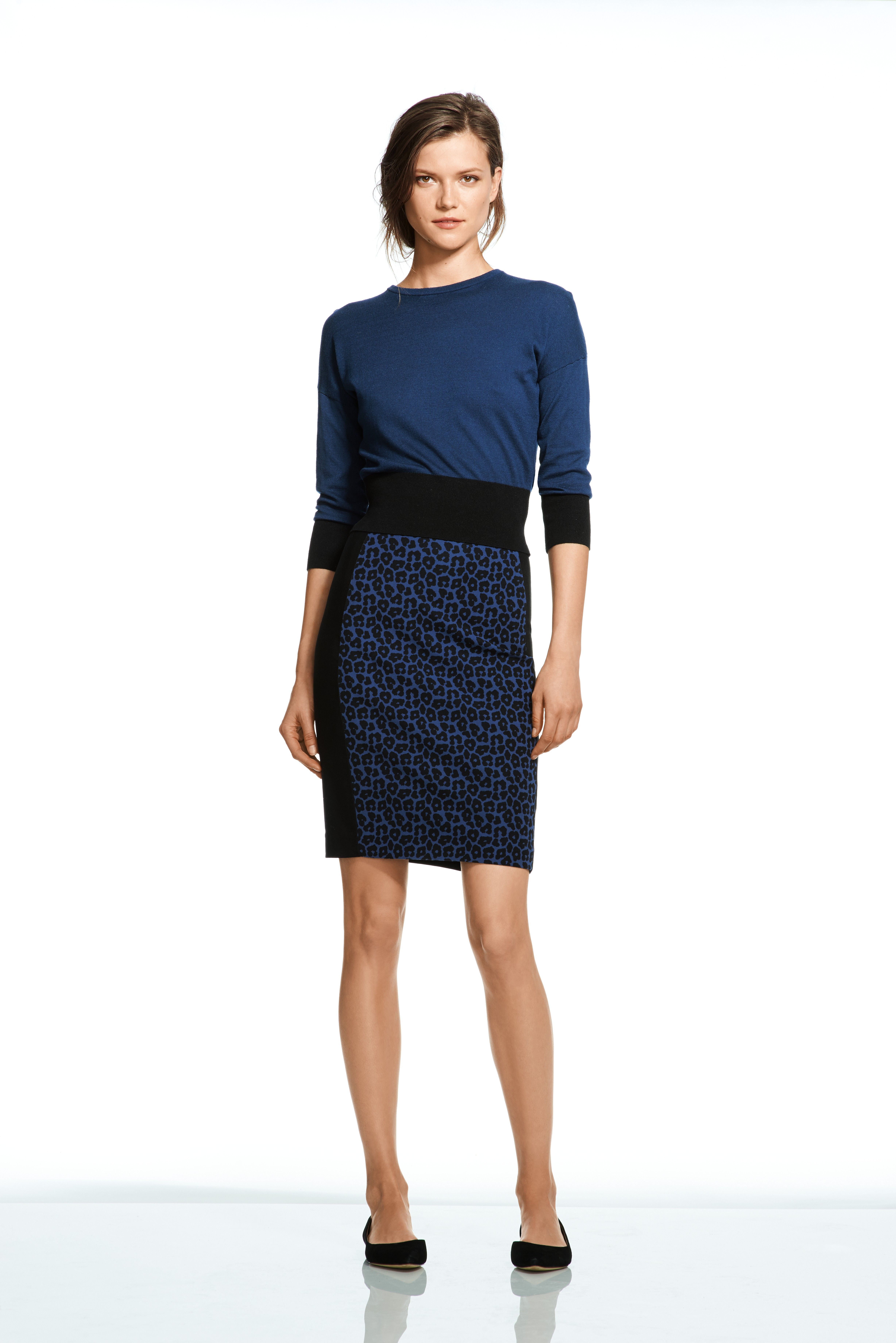 The limited edition capsule collection is work wear with sex appeal, meaning that office appropriate sheath dress will transition seamlessly to dinner à deux (and beyond). The foundation of the collection, BR’s signature Sloan fabric caught Mouret’s eye for its “magic” fit and slimming abilities, which the designer (famous for his understanding of the female form and exceptional fit) hand-draped, cut, and pinned on the body to create figure-flattering, wearable styles. Nearly 30 pieces (from $49.50 to $165.00) feature bold colorblocking, graphic perforated details, leopard prints, playful proportions and, of course, Mouret’s characteristic svelte cuts on everything from blazers and slimming pencil skirts to sheath dresses.