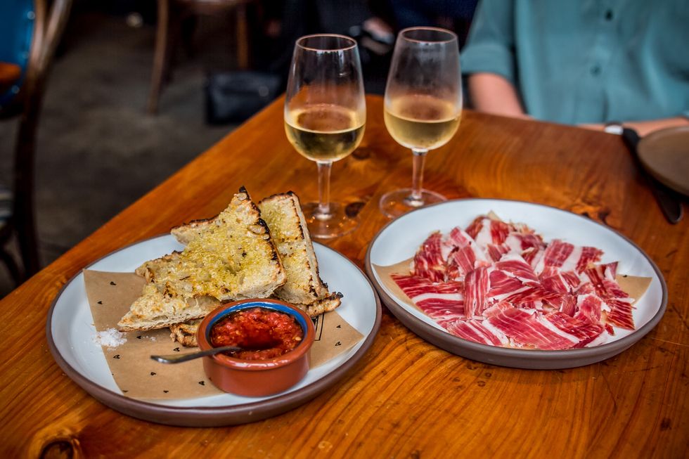 Nobody says no to carbs. Start with Barcino's version of pan con tomate—pieces of toasted Catalan bread with a side of savory tomato spread and sea salt. If you're looking to do one better, pair it with the Jamon Iberico de Bellota, perfect salty slices of Cinco Jotas ham from a very small, select group of pure-bred Iberian pigs that deliver an unrivaled flavor.