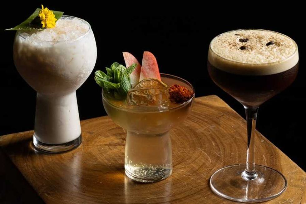 Drinks at the cocktail bar include a pineapple martini made with grains of paradise and preserved chilies from West Africa; jackalberry and persimmon sours that celebrate flavors common in both African and Dominican cuisine; and syrups, cordials, and infusions made with plantains. Many of the spirits are imported directly from Africa.