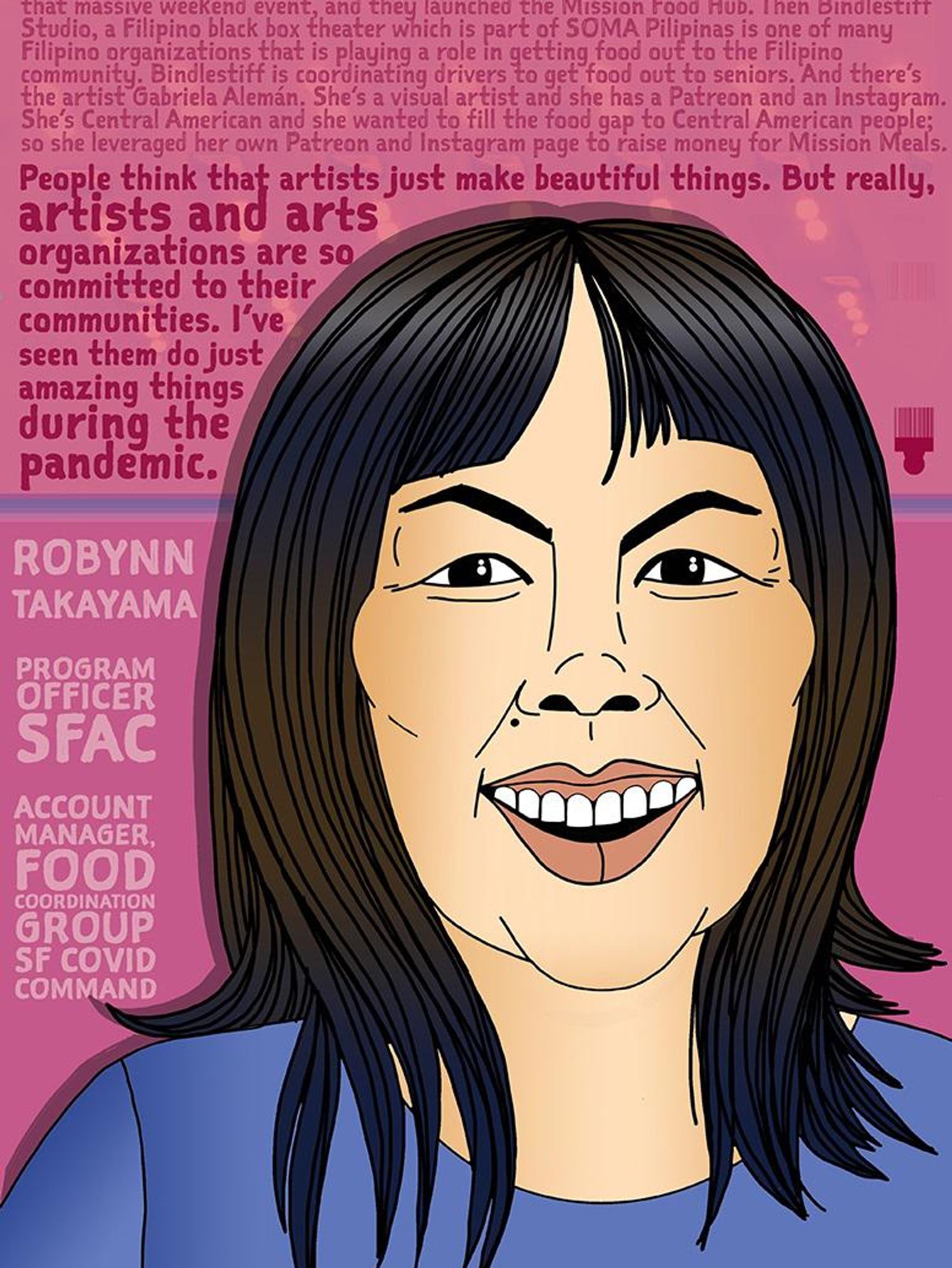 The CCC is located in the Moscone Convention Center where hundreds of city employees are deployed to fight the pandemic. One is Meg Shiffler, who had been the San Francisco Arts Commission (SFAC) Galleries Director. An artist herself? "No," she says, "Everybody asks that." Her title now is Arts Recovery Liaison. "I came to my deployment thinking about artists and thinking about the arts community and really trying to figure out how we could engage artists in this process, a little like the WPA." The artists are compensated $4,500.
