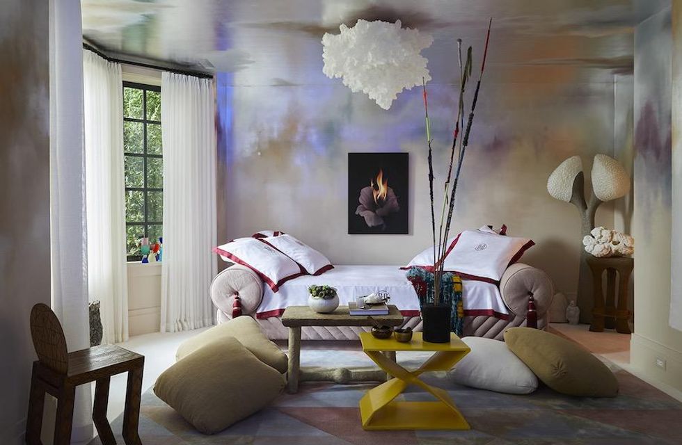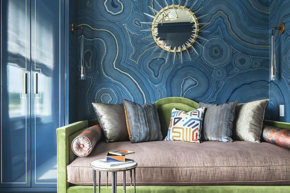 "Oh, this is a good question—and hard! I would say a few things: I am trying to bring fine art to your walls and turn your basic walls into jewel boxes. And, simultaneously, I'm using Old World techniques but bringing a modern twist to them. I am obsessed with the complexity of colors and patterns. Most importantly, though, I am trying to evoke a feeling, to create environments for my clients," she explains.