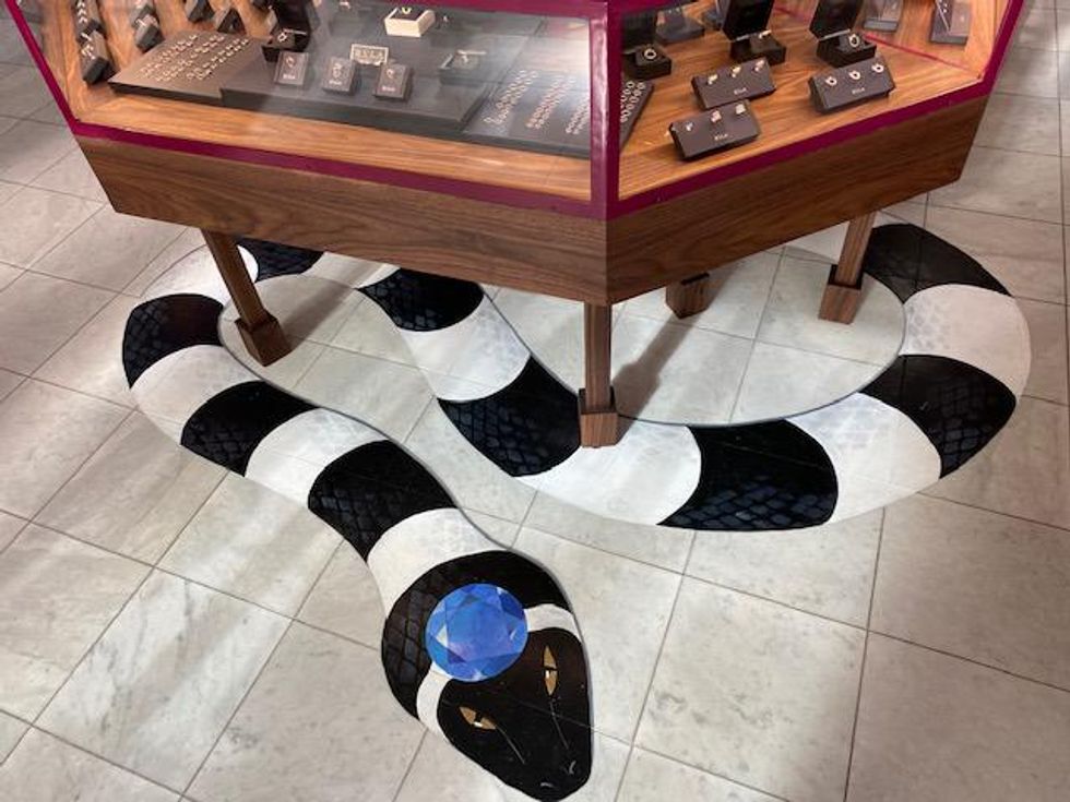Sure, the bracelets, rings and necklaces inside are fab, but it's the stunning interior—with its slithering snake painted on the floor—that initially stops folks in their tracks.