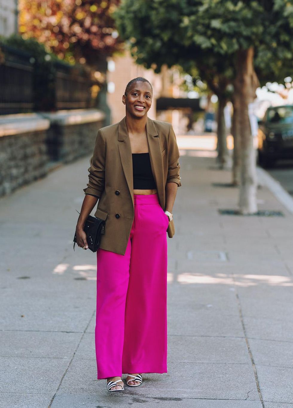 "Right now, I am just not feeling tight pants or jeans. Looser, slouchy pants feel much more current. If going tight, it's full-out like a stirrup legging or Live the Process bodysuit layered with something slouchy, like a big blazer or oversized shirt. In the same vein, not loving any shrunken or tight blazers or jackets—the silhouette is oversized tailored."