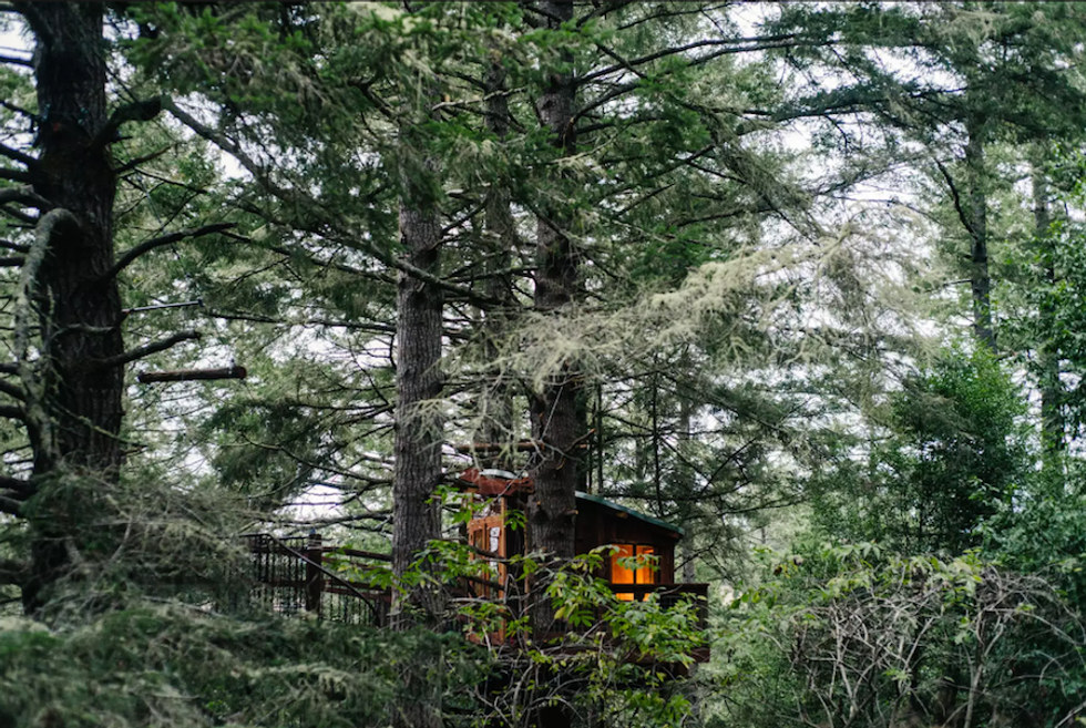 Just north of Bodega Bay, Eagle's Nest Treehouse at Salmon Creek Ranch is perched four stories above the forest floor between two towering Douglas firs. Its large redwood deck can be accessed via a spiral staircase and a 30-foot long suspension bridge. Once inside, you'll see why the place has been published in House & Garden. Clad in richly oiled old growth redwood and built to feel like home with French doors, insulated walls and a copper-lined shower, Eagle's Nest has basically everything you'll need—queen bed, heat, hot water, a flush toilet, and low-wattage electrical outlets. (BYO bedding.) A stay at the ranch also means access to the massive working ranch, organic pastures, private forest, and the scenic Salmon Creek and beach. // $320/night for two adults (no kids, no pets); details at Hipcamp.com.