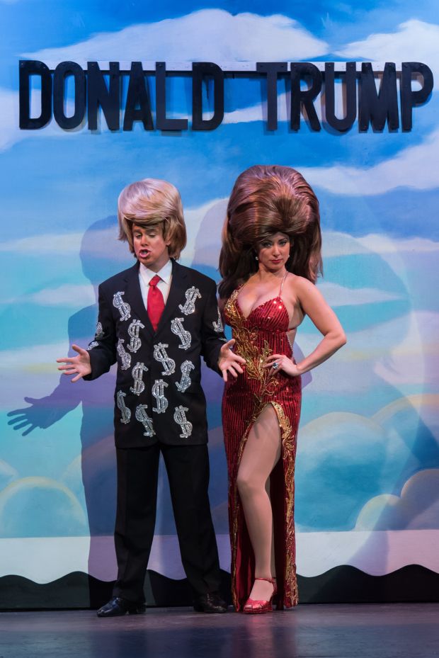 As we're sure you already know, Beach Blanket Babylon follows the story of Snow White as she takes a fast paced journey around the world in search of her “Prince Charming.” This year, new characters include presidential candidates Donald Trump, Bernie Sanders, Jeb Bush (dressed as an actual bush) and Hillary and Bill Clinton as well as Adele, Bill Cosby, Kim Kardashian, Lady Gaga, and Taylor Swift. With special appearances by characters from Orange Is the New Black and Star Wars. And don't forget the Golden State Warriors!