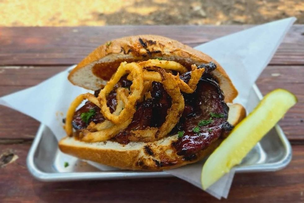 The smoked brisket sandwich at the Lake Alpine Lodge Restaurant