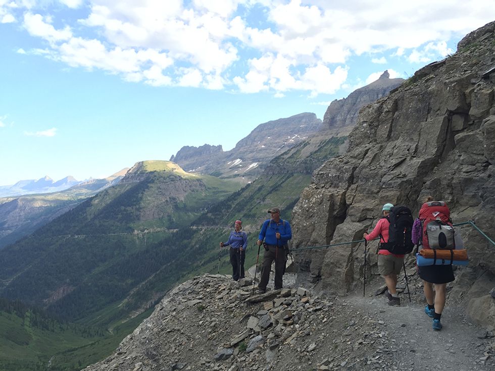 The Highline Loop Trail begins at Logan Pass, on the north side of Going-to-the-Sun Road, and follows along the Continental Divide. You can go the entire 12 miles or turn back whenever you want—contrary to what the name suggests, the Highline Loop is a strenuous out-and-back with thrilling views of Going-to-the-Sun Road and the Garden Wall, a steep floral wonderland in summer months. The trail is notoriously narrow, with one stretch winnowing down to just four feet in width (there's a handrail for those nervous about the steep drop down to the road). Have your camera ready—this hike is a veritable highway for mountain goats. // Highline Loop Trail, hikinginglacier.com/highline-loop