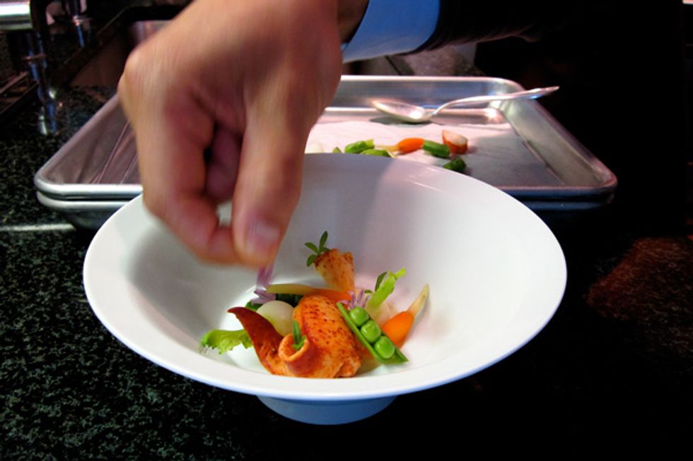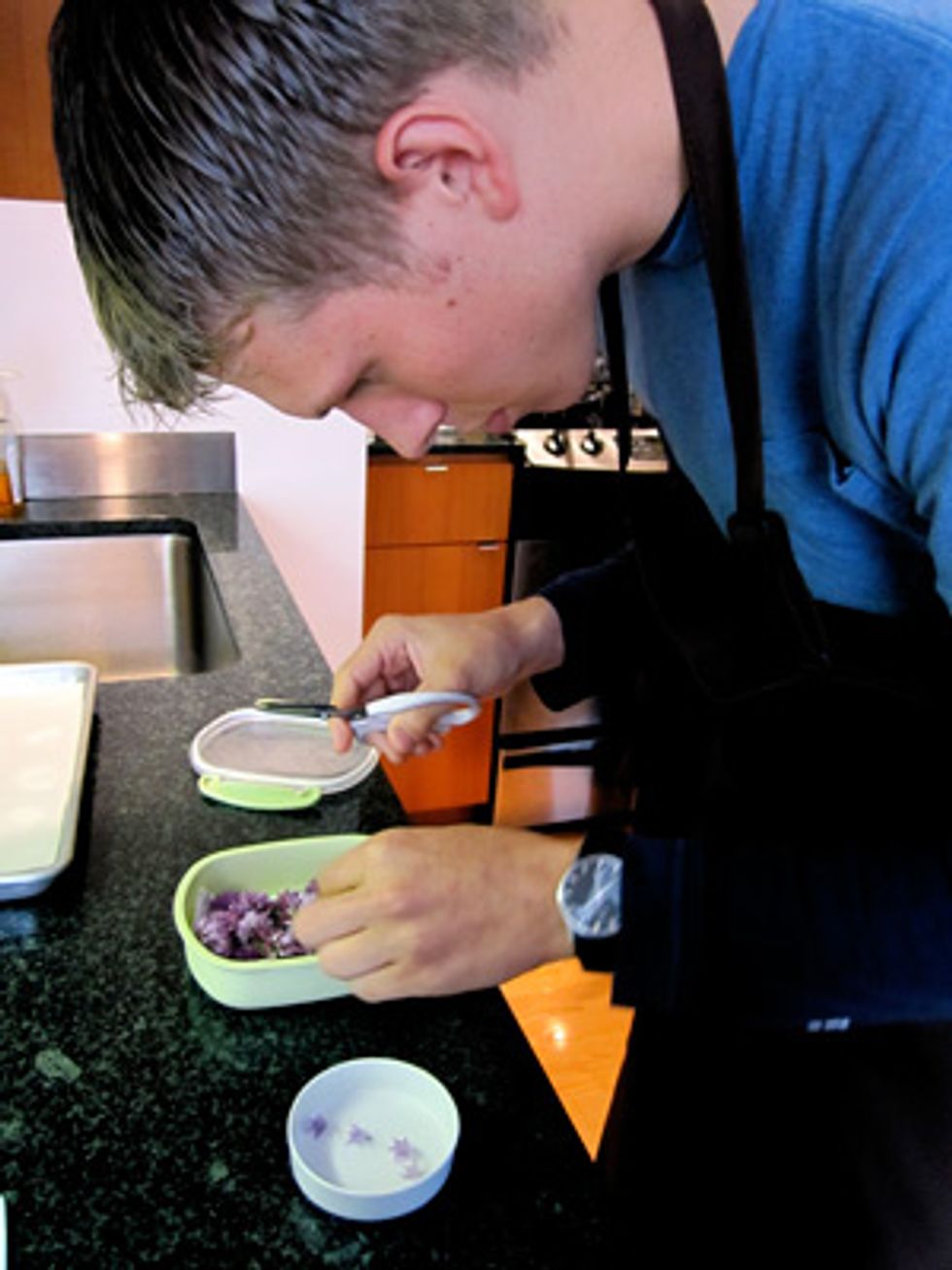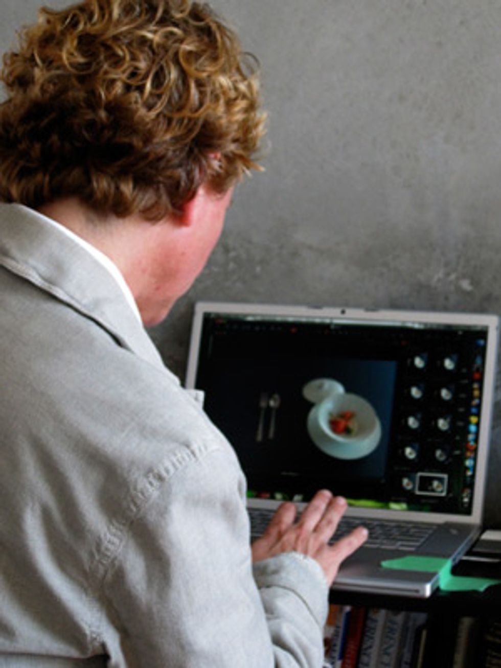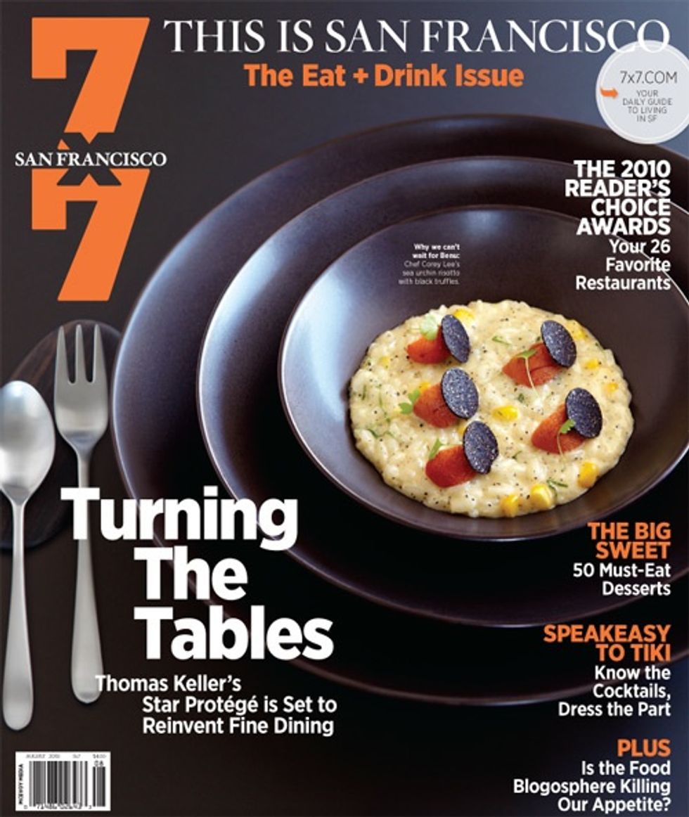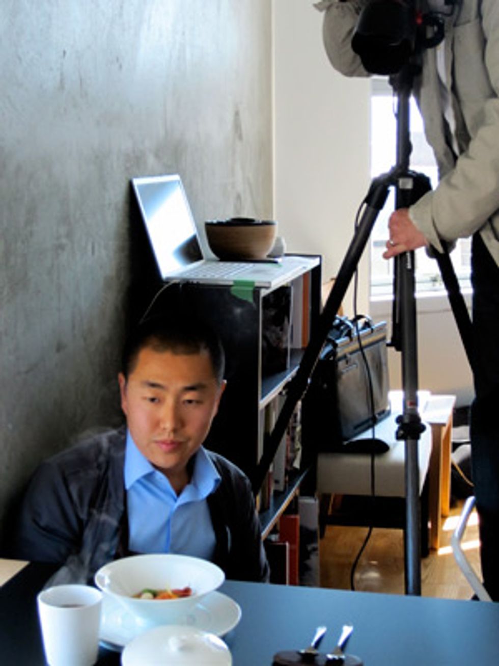 On a windy, sunny day, I showed up at chef Corey Lee's SoMa loft for the cover shoot for 7x7's food issue and for the feature article "Closer to Fine." I'm continually amazed by how much work it takes to do these shoots. We had seven people there, from a publicist to 7x7's design director to Frankie Frankeny, the photographer. On the electric (!) stove, there was a sea cucumber rehydrating. Tacked on the fridge was a mysterious map of Mt. Sutro. Two of Benu's young sous chefs, both in their early 20s and both named Brandon, were bent over snipping bits of micro everything: tarragon, chive blossoms and more. Tweezers were used a lot and the lobster bouillon was heating up in a dinky old Revere Ware pot ("It's my ramen pot," Lee smiled). There's always down time at a shoot, so I took this chance to ask the unflappable and very kind Lee some burning questions.