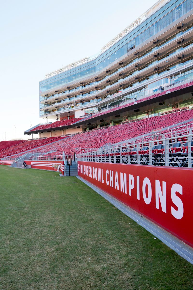 We went behind the scenes at the new Santa Clara Levi's Stadium to bring you a glimpse into this mammoth, state-of-the-art ode to 49ers football. The (staggering) $1.2 billion stadium seats approximately 68,500. It also features 165 luxury suites and 8,500 club seats.