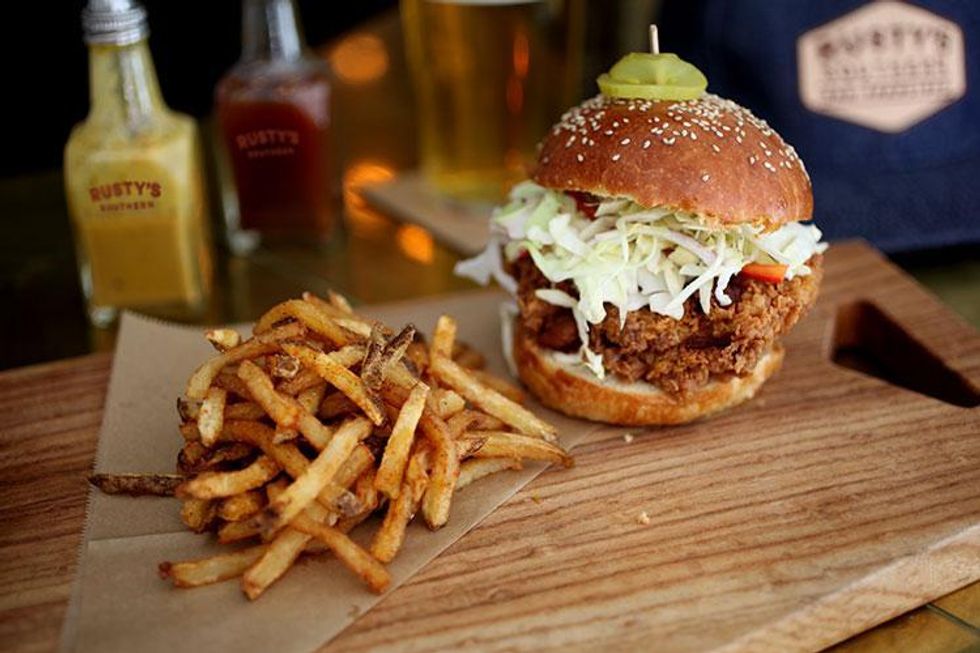 Rusty Olson, founder and owner of Rusty's Southern, has North Carolina's Lexington-style barbecue sauce in his blood. "Growing up in North Carolina, I had great-uncles on both sides of the family who were passionate about barbecue. On my mother's side, Uncle Buck ran the Poplar Tent Presbyterian Church Annual Fundraiser Barbecue in Concord, NC for many years. On my father's side, Uncle Jimmy ran a bait and tackle shop in St. Stephen, SC. He had a BBQ pit where he smoked shoulders and made sandwiches for folks headed out to a day of fishing."