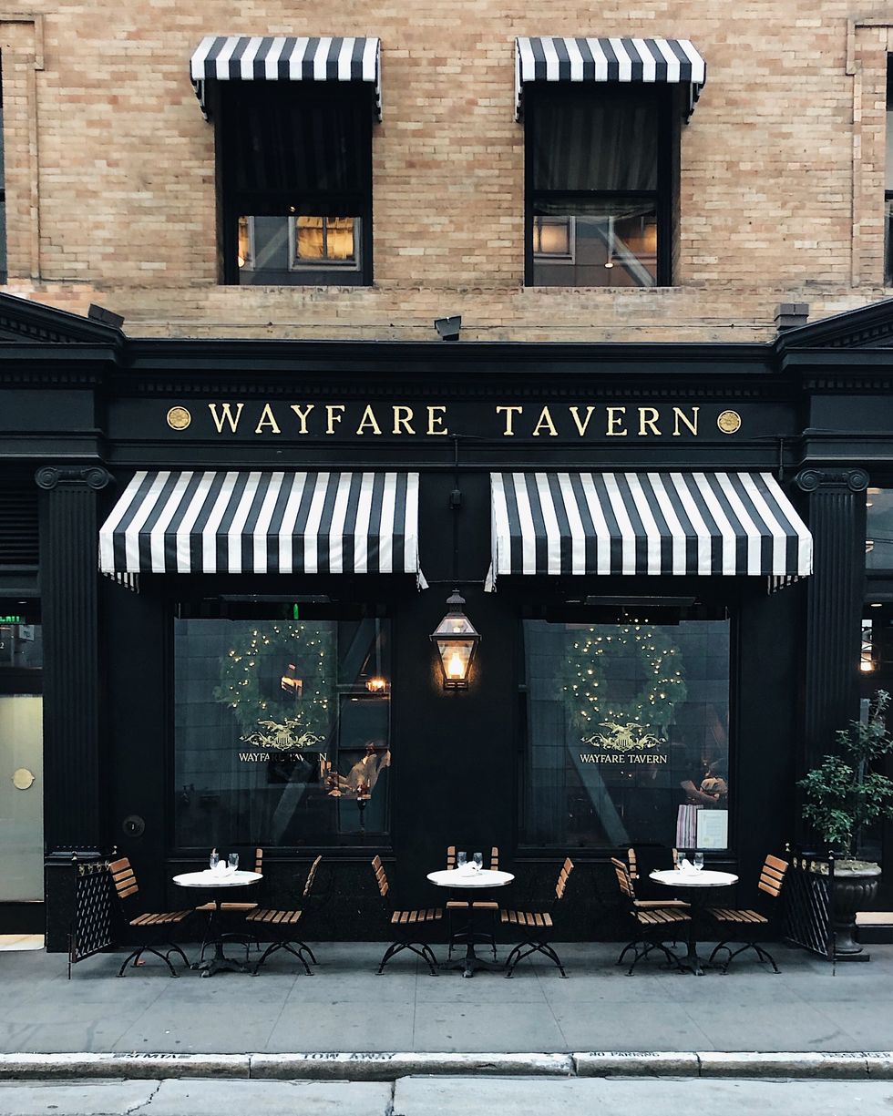 Wayfare Tavern's windows invite us to eat, drink, and be merry.