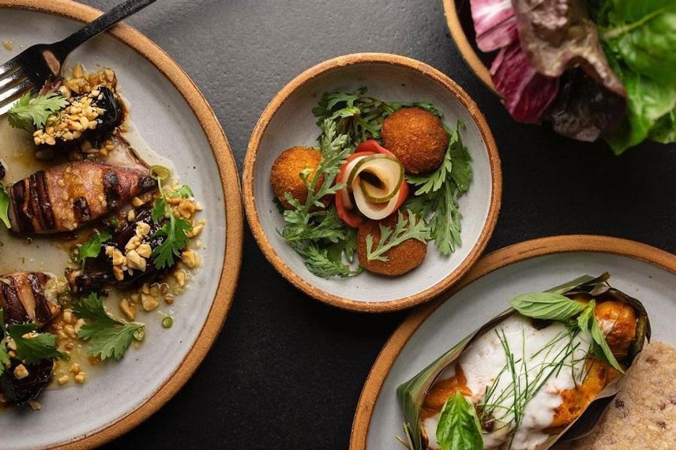 Chef Pim Techamuanvivit’s sophomore effort is a tribute to the women who laid the foundation for modern Thai cuisine. And like everything the Michelin-starred chef does, her way of integrating California ingredients with traditional and contemporary Thai flavors is nothing short of spectacular: Dishes like beef pad prik gaeng (grilled flank steak with Jimmy Nardelos, corn and spicy southern curry) and laab hed (northern-style with mushrooms, crispy alliums and herbs) balance beautifully balance acid and heat. The slick restaurant, an oasis of wood paneling, soothing colors and fabrics, and live plants, pairs its Bib Gourmand-menu with fresh, herbal cocktails like the pikul, a combination of rye, genever, allspice, pandan, orange bitters, and toasted coconut.