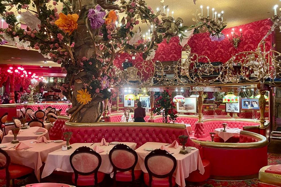 The kitsch spills out into the hotel’s bars, dining areas, and pool deck, too. The main attraction is the ridiculously over-the-top, Barbie-fied steakhouse, serving solid oak-pit barbecued steak, seafood, and chicken. The Silver Bar Cocktail & Lounge next door is decked out with intricate, hand-carved wood accents, stained glass, tufted wingback chairs, pinker-than-pink barstools, and a huge dance floor for swinging to the sounds of live music on the weekends. Keep reading. -Shoshi Parks