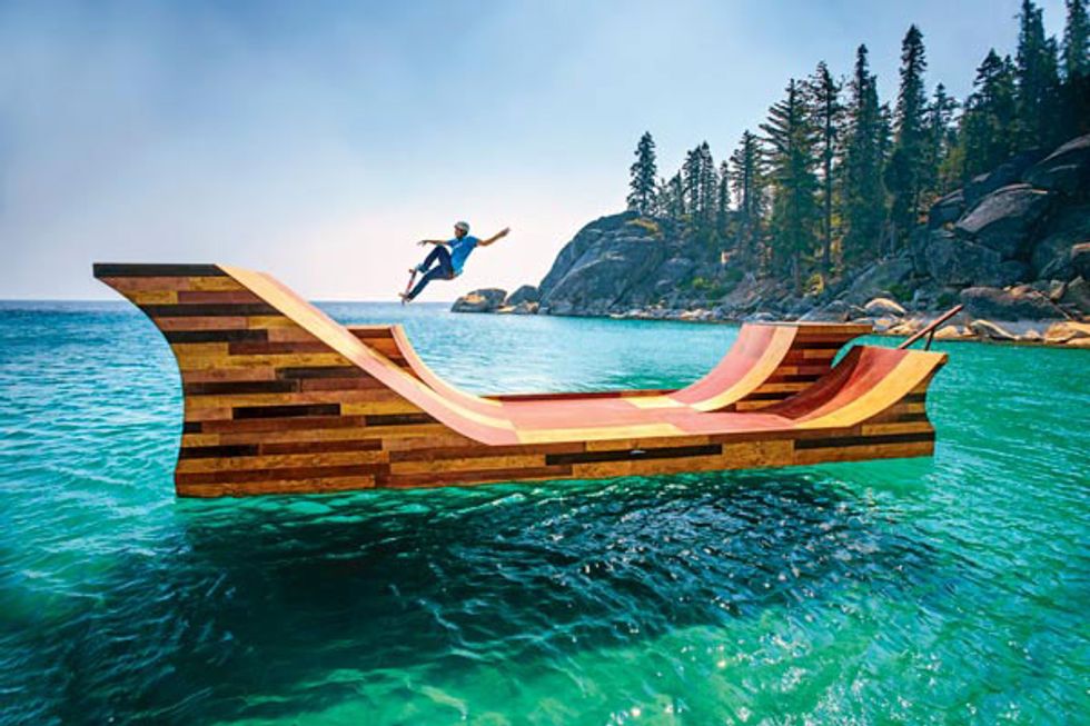 Visit California has taken over YouTube, putting the spotlight on the Golden State’s abundance of inspired citizens who make the seemingly impossible happen. Pedal a 15-foot-tall bicycle over the Golden Gate Bridge? Check. How about a jet pack ride above an arid lake bed? On lock. But we love the floating half-pipe by pro sk8r Bob Burnquist. Beautifully crafted from birch, oak, pine, and spruce, the 7,300-pound engineering marvel is something we’d like to see become a permanent reality on Lake Tahoe.