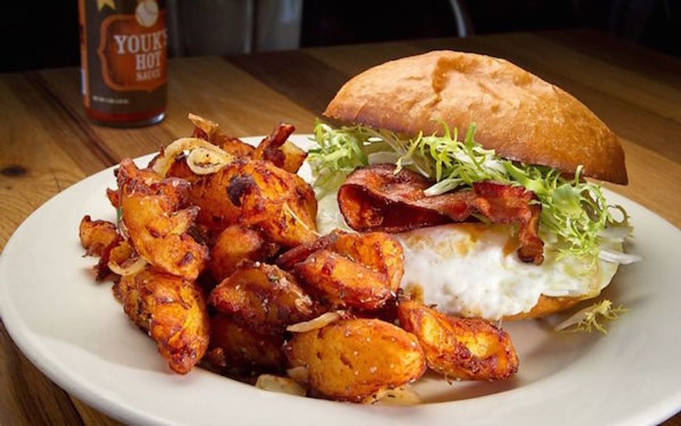 Much has been written of the Marlowe Burger. In fact, upon a recent Google search for the legendary sando, we were prompted: Did you mean "mmmm Marlowe Burger"? Why yes, we did. This patty—a beef-and-lamb mash-up served with grilled onions, cheddar, bacon, lettuce and horseradish aioli on an Acme bun—is known to be SF Chronicle critic Michael Bauer’s favorite. We’re beyond inclined to agree. This burger is so good, it got its very own shrine with the opening, earlier this year, of Marlowe Burger on Townsend Street. May we suggest a side of chicken nuggets? Mmmm, indeed. — C.H.H. // 330 Townsend St. (SoMa), marloweburger.com