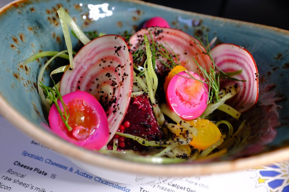 Drawing from Basque traditions, this 49-seat restaurant encourages convivial dining with its large communal table and white marble bars where regulars stand, Spanish style, for a small bite with a glass of sherry. The main offerings are traditional pintxos, small plates and larger cazuelas, inspired by chef Pollnow's experiences as a young chef cooking in Spain, with regional Northern California influences thrown into the mix. There's also a salt-grilled rib eye for two, if small plates just aren't enough for the red-blooded Americans among us. — S.M. // 2170 Market St (Mid-Market), aaxtesf.com.