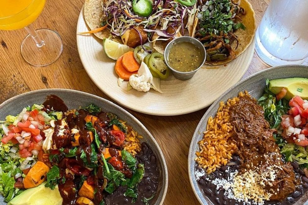 This joyful Cow Hollow restaurant embroidered with patterned murals and woven basket light fixtures is a great upscale spot for tacos and regional Mexican favorites—not to mention $8 happy hour margaritas and five different tequila and mezcal flights. At dinner, housemade tortillas filled with chicken tinga and carnitas are served alongside mole, enchiladas, and an entire branzino marinated with guajillo-achiote adobo. At lunch they also offer lighter rice bowls, and breakfasty yums like cornmeal pancakes and chilaquiles at weekend brunch. If you’re in Marin, the restaurant has a second location with a huge patio in Corte Madera.
