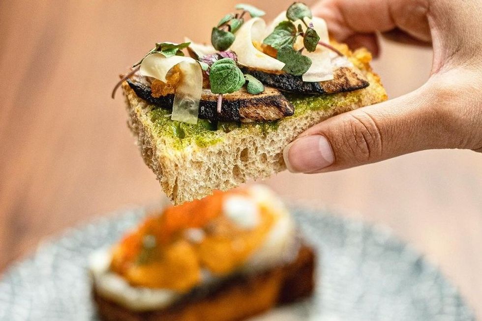 The modern North Beach noshery Hilda and Jesse evolved out of a series of popular brunch-for-dinner themed pop-ups. But lately, while continuing their breakfast tradition Saturdays and Sundays, they’ve branched out to dinner foods, too. Mondays, Thursdays and Fridays, the seasonal five-course Chef’s Adventure Menu showcases innovative takes on classic dishes like schnitzel and apple pie a la mode served up in the playful diner-inspired space. Brunch is a decadent affair with a three course tasting menu or a la carte choices like fried duck wings, rolled Latvian pancakes filled with white truffle and pumpkin cottage cheese, and shrimp toasties with chili mayo. At both meals, Hilda and Jesse’s sparkling wine collection befitting of the restaurant’s endless effervescence.