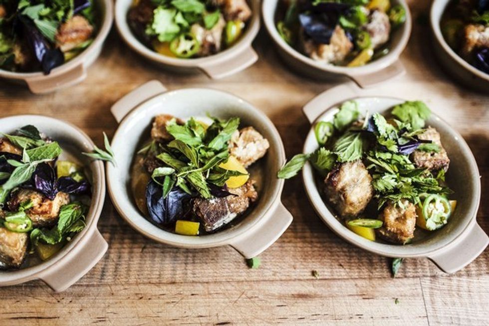 We've traded our skinny jeans for stretch pants to bring you a majorly updated Big Eat San Francisco this year: With 100 new dishes—including the soup dumplings at China Live, Nightbird's quail egg in hollandaise, Halal Guys' combo plate, Izakaya Rintaro's "odd bits" yakitori, and Tartine Manufactory's rocky road ice cream pie—you can consider the gauntlet thrown. As always, we bring you a mix of the city's newest, hottest, and most beloved restaurants, with a variety of meats, sweets, sides, and veggies at every price point, in every part of town.