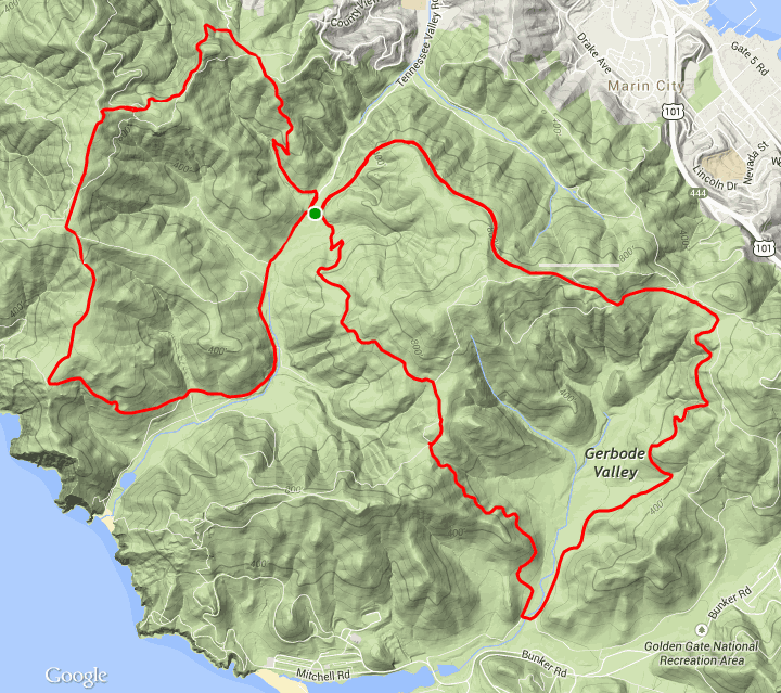 1. The trailhead is at the end of Tennessee Valley Road. Take Highway 1 to Highway 101. Exit Stinson Beach.