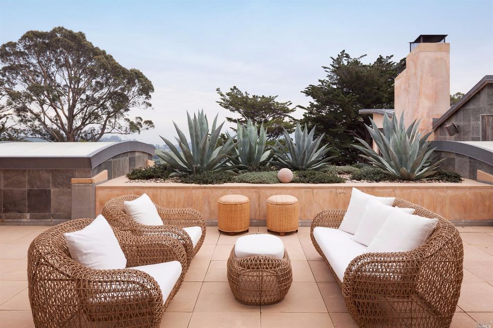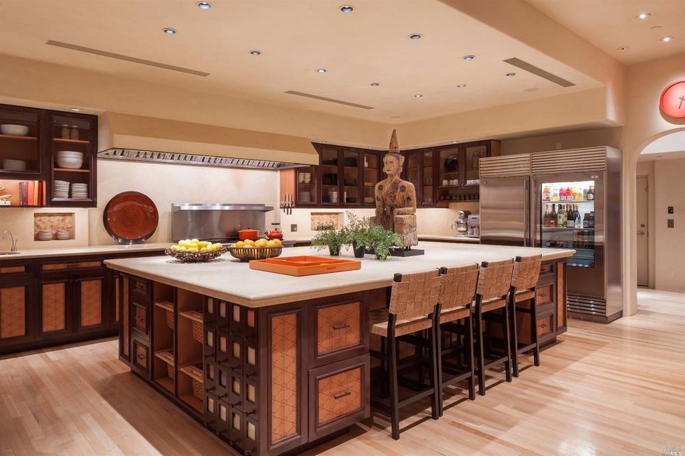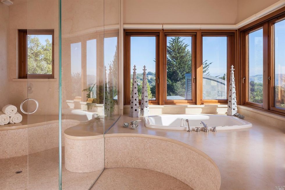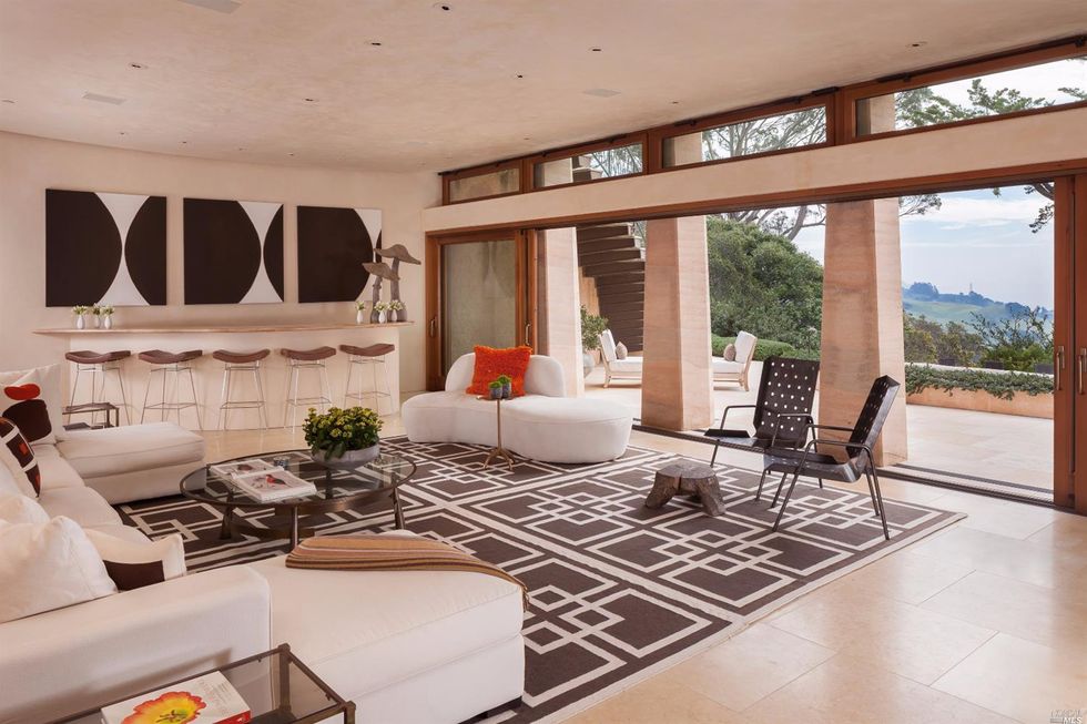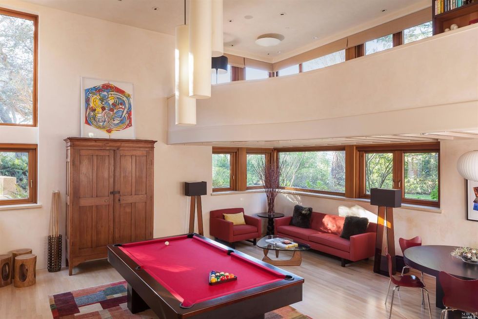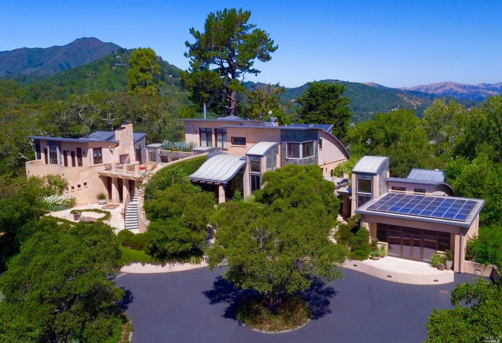 Nestled in the trees, this 11-acre modern estate holds dazzling views of the SF skyline and panoramas of the surrounding lush, green hills. Roughly 10 miles from the city, this is the ultimate escape; and the highest priced home on the market in Marin. The house holds more than one can imagine—reminiscent of the dwellings you'd gawk over on MTV cribs; which is fitting considering it's known as the Guitar House, once home to the late rock director, Bill Graham. Though the original digs were razed, the new structure maintains musical touches. In 2002, the current house was built for Michael Klein, an environmentalist, board member of the Rain Forest Action Network, and music lover.