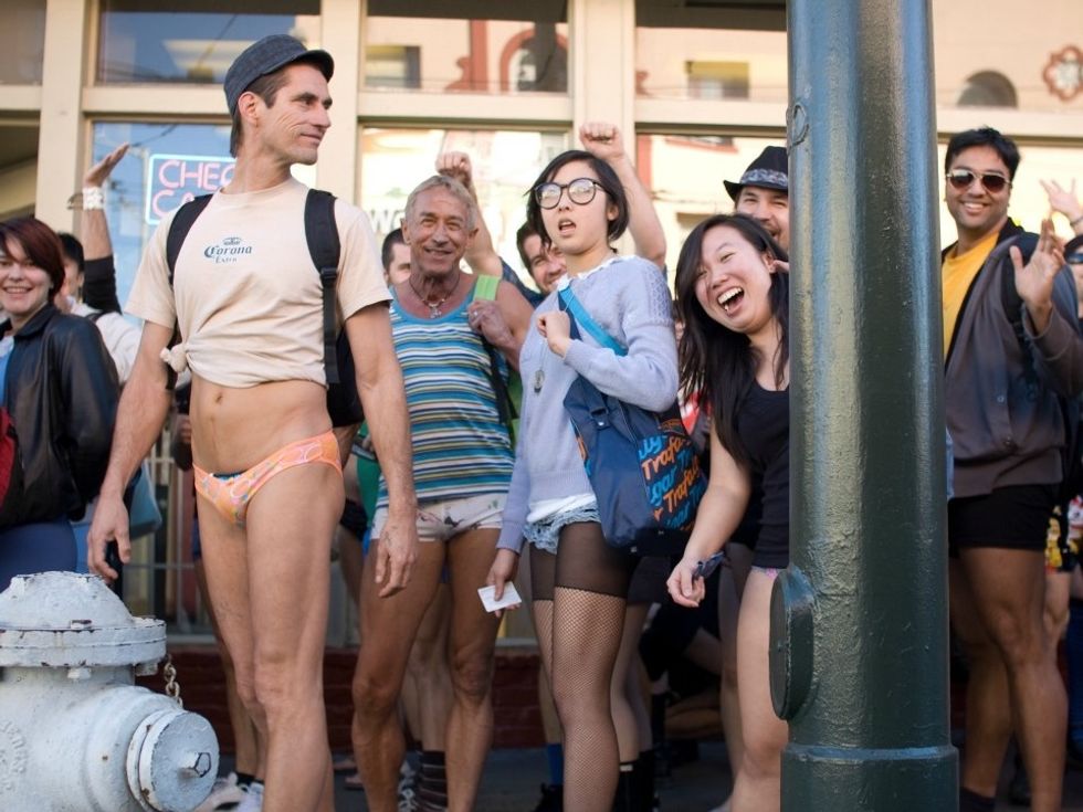 WHAT: Drop your pants for the 16th Annual No Pants Subway Ride. The whole point is for 600+ people to ride BART or Muni without any pants (interesting undies and colorful socks recommended) and to keep a straight face while doing so.