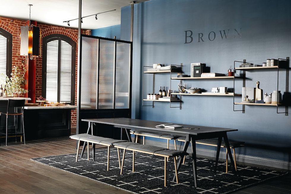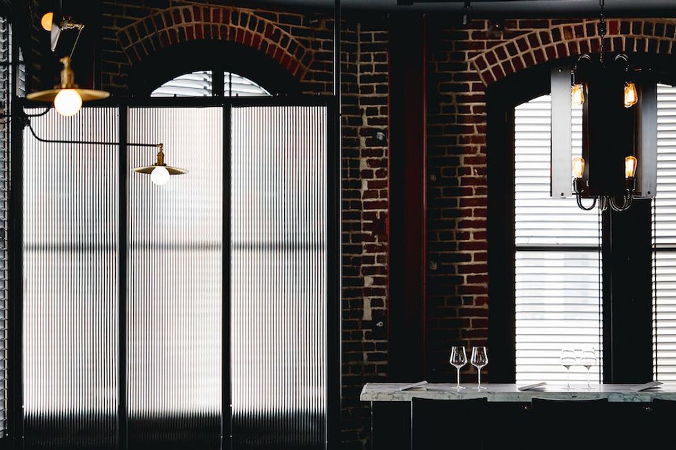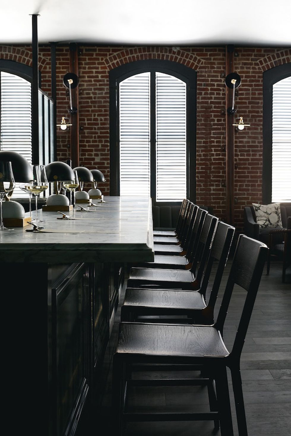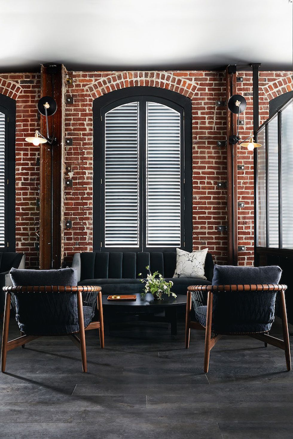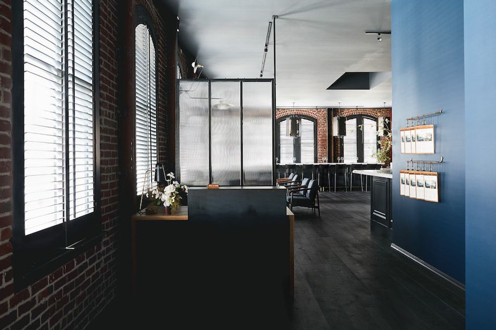 Recognizing those cool loft vibes from her days working in New York, Kwong worked with the architectural bones she'd been given. Location-appropriate cold-rolled steel and fluted glass dividers were added throughout to provide some intimacy in the open space, and the original black shutters were saved, lending a moody ambiance. Upon entering, you might feel like you're dropping into a speakeasy of yore, except that every detail was conceived for coziness—the Brown family wants you to feel at home.