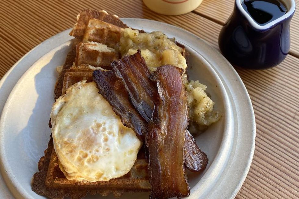 No one would blame you for adding an egg and some bacon to Standard Fare's sourdough waffles. (Courtesy of Standard Fare)