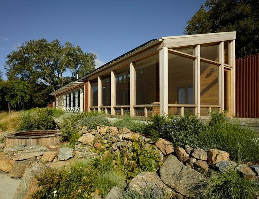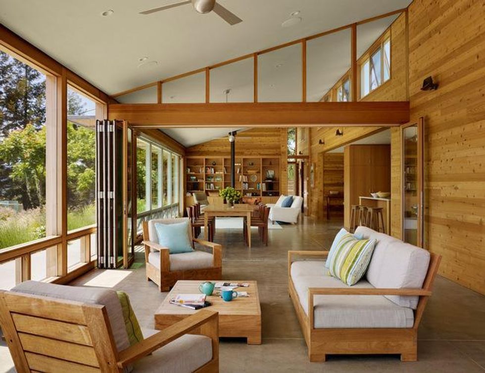 Sonoma County is known for wine and beautiful landscapes, but the orientation of the original log cabin didn't take advantage of the site's panoramic vistas or the existing pool on the south side of the home. Having grown up in houses with abundant screened porches, the homeowners sought a design with considerable connection between indoor and outdoor space — but one with minimal site impact.