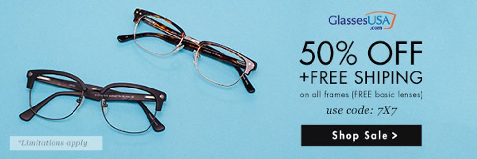 GlassesUSA.com is offering 7x7 readers 50% off and free shipping on their entire collection, including basic lenses. Use the coupon code "7x7" at checkout and you'll be on your merry way to sporting fresh frames that'll have the block talking. So what are you waiting for?