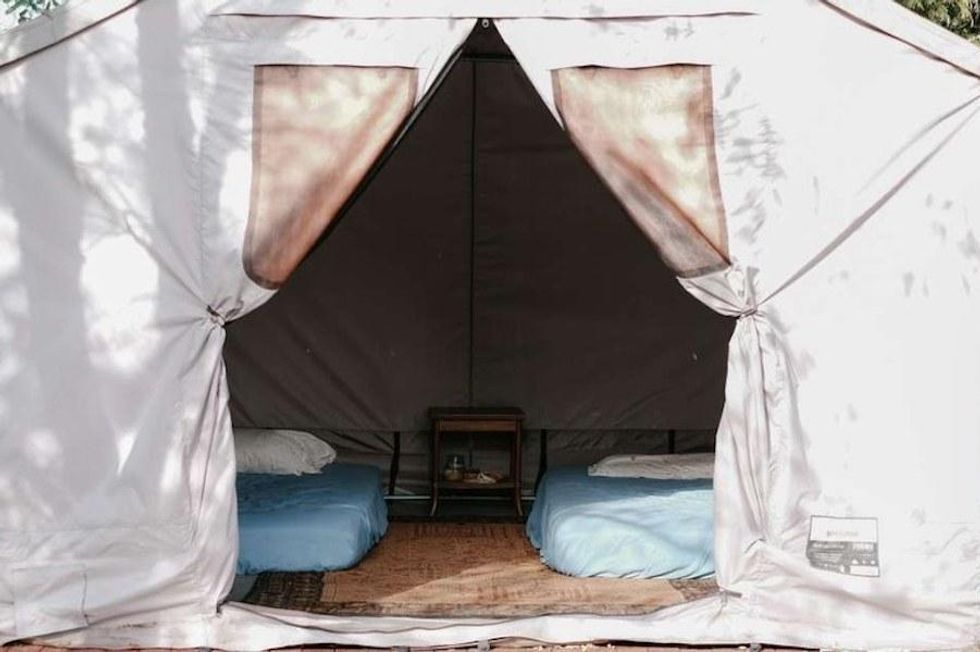 Ever wanted to experience a night's sleep in a safari tent—but in lieu of the intrusive, dangerous wildlife scurrying around? Located in a 12-acre permaculture oasis home to the Real Goods Store and the Solar Living Institute, the large Barebones tent is permanently erected inside the property to appease the glamping masses. Sitting atop a level decking, the Mendo Oasis Tent has within its confines two twin foam mattresses and one small table, perfect for enjoying your morning coffee. Bring your sleeping bags and cooking gear, or use the outdoor kitchen. // $55 per night; off Redwood Highway and Highway 175 (Hopland), hipcamp.com