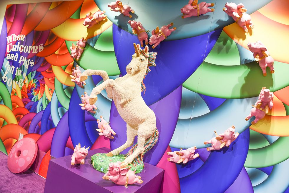 And to be sure, this IRL Candyland brims with enough eye-popping and tastebud-tickling delights that even the most jaded of interactive exhibit-goers may not be able to resist a few captures to flaunt on their feeds. After all, when was the last time you saw the Mona Lisa rendered in hard candy or Prince composed of gumballs and licorice? The requisite unicorn is here too, with rainbow sour tape hair flowing in the wind.