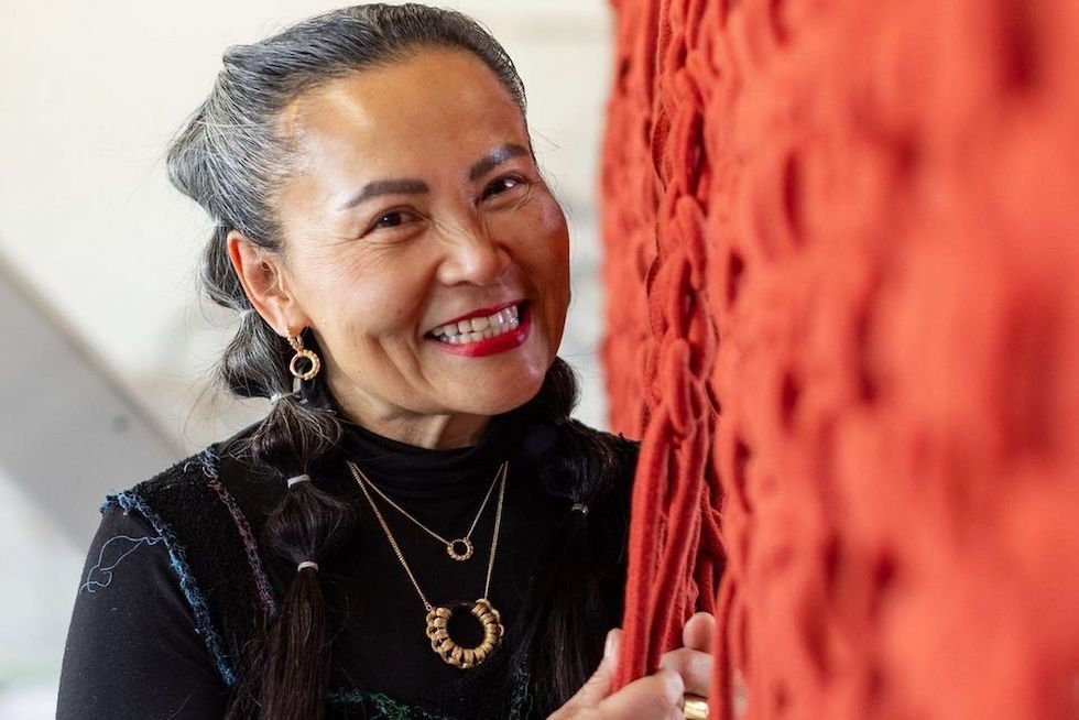 Artist Windy Chien wearing Knot Life necklaces in collaboration with Cast Jewelry.