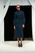 The colors are mostly dark -- navy blue, dark purple, dark red, and dark green -- but Murphy uses bright fabrics for the linings, which reveal themselves on the runway as subtle flashes of color. Form-fitting smocking around the chest and shoulders introduces a subtle element of femininity.